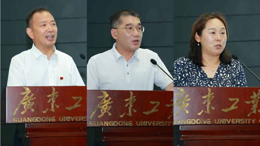 校级理工类科研团队代表、校级人文社科类科研团队代表、揭阳校区管委会负责人分别作主题发言