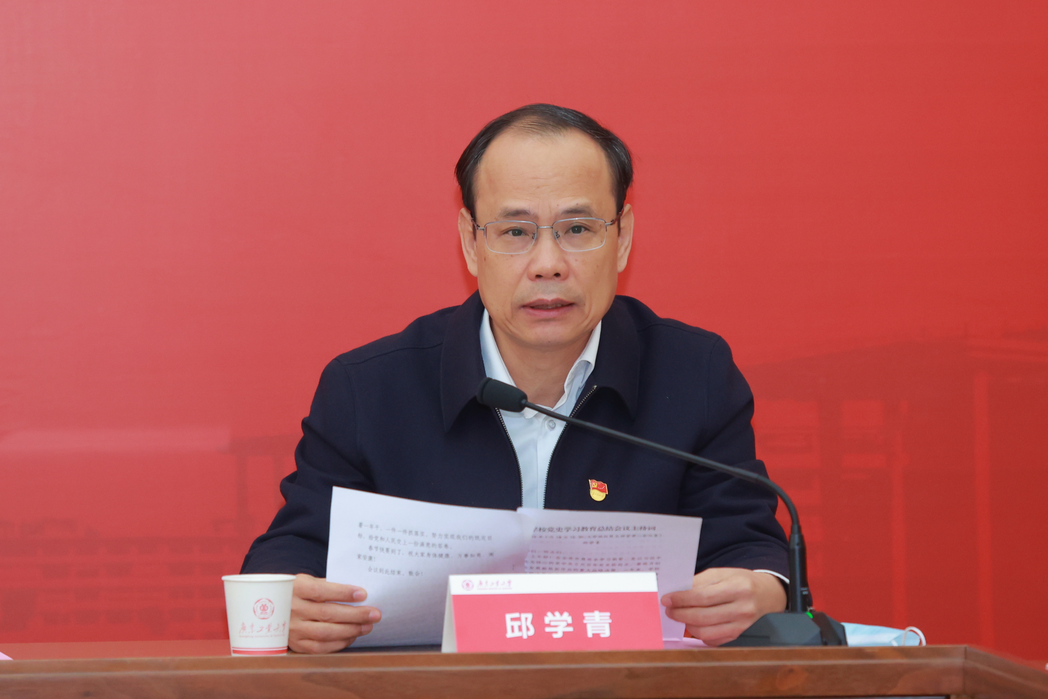 学校党史学习教育领导小组副组长、校党委副书记、校长邱学青主持会议