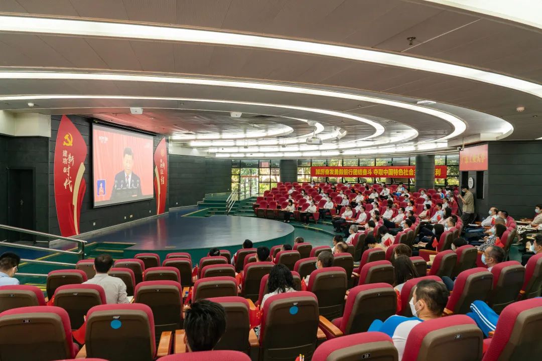 学校党委将收听收看习近平总书记在中国共产党第二十次全国代表大会上的报告作为一项重要政治任务,精心组织、周密部署,通过电视、网络、广播等多种形式收听收看党的二十大开幕会。学校在大学城设立主会场,各校区、各二级党组织,各部门、单位结合疫情防控要求,共设立66个分会场,30000余名师生集体收听收看,做到收听收看全覆盖。全体在家校领导、校党委理论学习中心组成员、机关党委中层干部、学校民主党派人士和学生党员代表在大学城校区大讲堂集中收看。广大师生聚精会神听报告,全神贯注作笔记,真正融入到党的二十大盛会热烈浓厚氛围中。