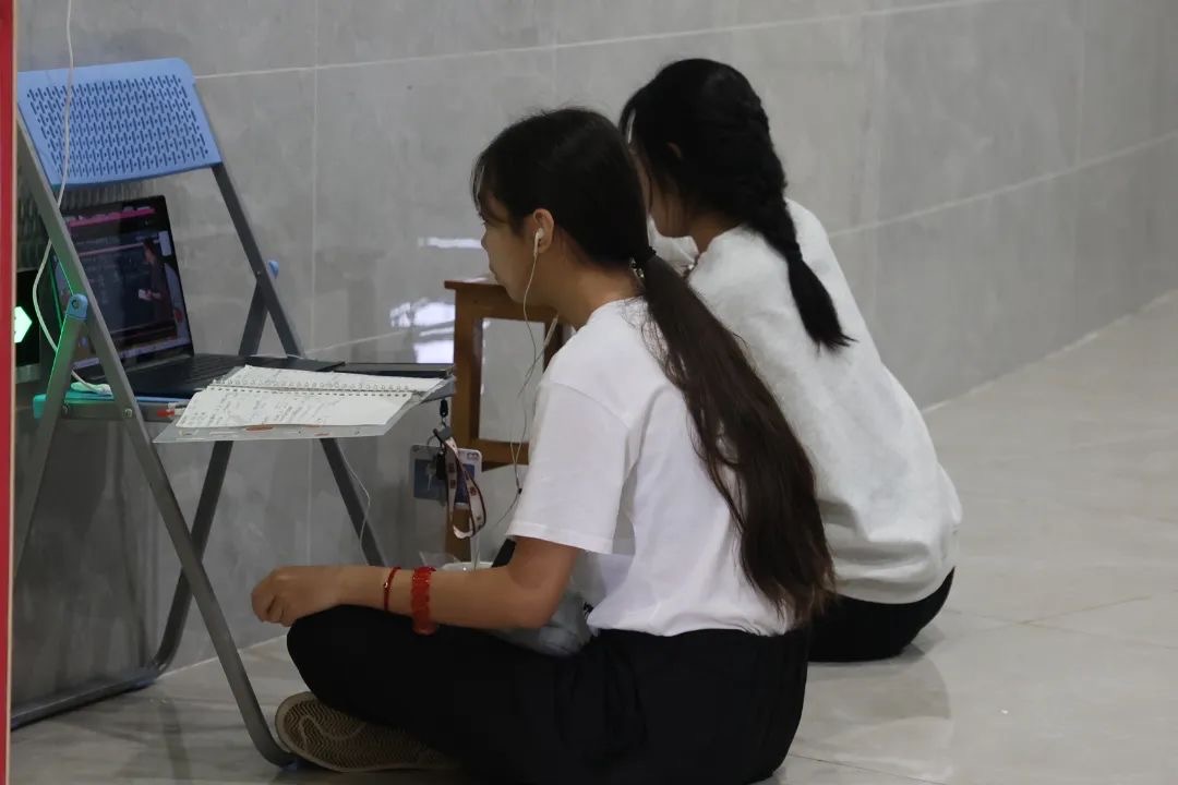 “广工的同学非常有吃苦耐劳的精神!”执行导演、青年陈汝基扮演者、通识教育中心教师陈蕾说,整个训练过程,来自各专业、各校区的同学们不仅要克服跨校区排练等困难,而且都是利用业余时间,课后、中午、晚上,常常顾不上吃饭;排练到深夜,甚至累了就睡在舞台上。“每演完一个节目或者侯场时,台下的孩子们赶作业的赶作业、复习的复习,还有一些建筑设计专业的同学现场画图……为了做好这件事情,同学们能克服所有困难!”