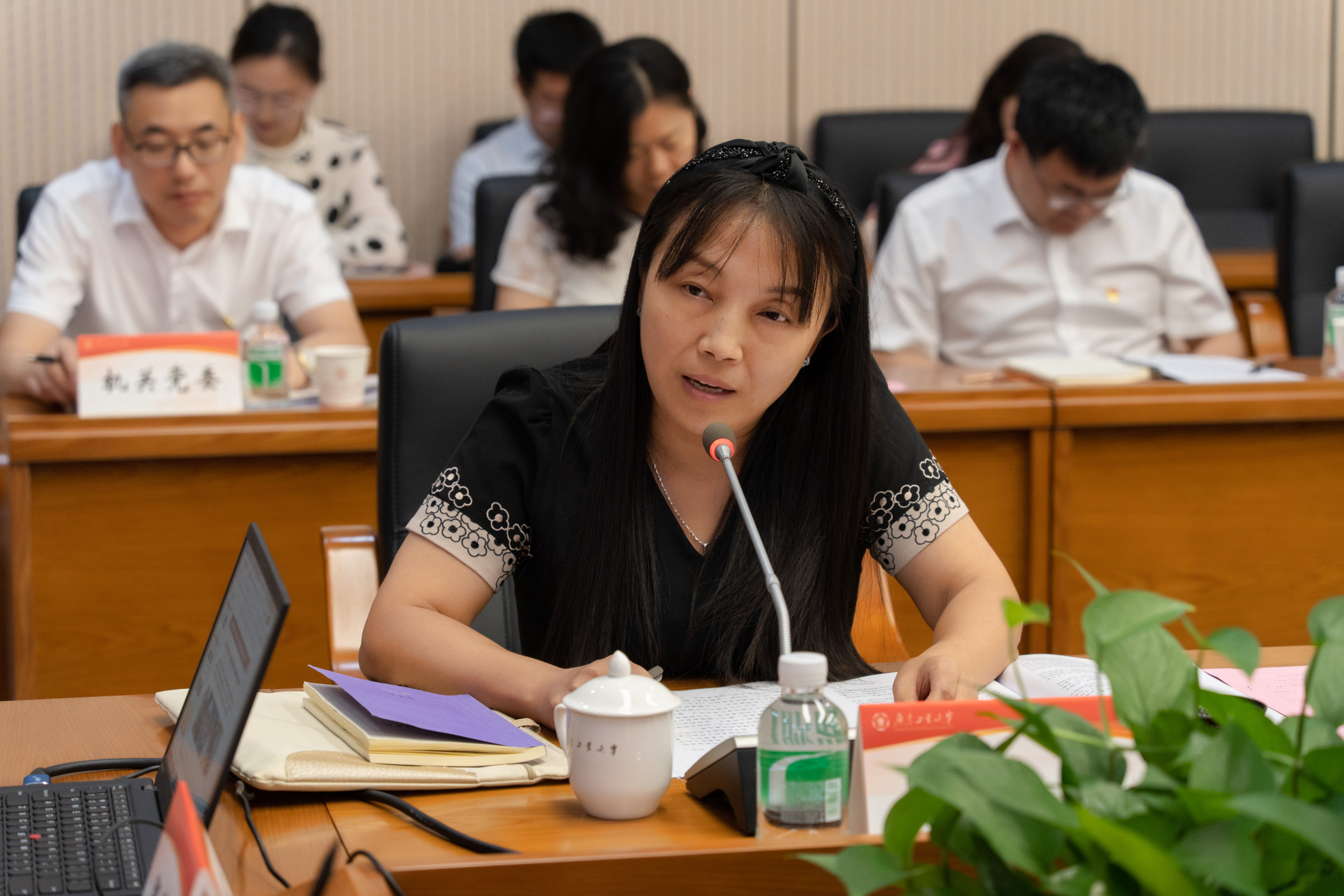 会上,胡钦太作了题为《高质量党建引领高质量发展》的汇报发言,聚焦破解制约学校改革发展的瓶颈问题,深入调查研究,把调查研究成果转化为推动学校高质量发展的强大动力。学校主题教育领导小组副组长、校党委副书记、校长邱学青作题为《打造高水平师资队伍 加快推进学校高质量发展》的汇报发言,查找学校当前人才引育中存在的问题,深入分析研究对策举措,优化落实,不断强化高水平创新型大学建设中师资队伍建设的针对性和有效性。党委常委、党委副书记陈良友、朱蔚蔚、陈卓武分别作题为《健全完善干部“选育管用”全链条工作机制 全面提升干部队伍能力》《推动学校宣传思想文化工作高质量发展》《强化问题导向 坚持守正创新 推动学生思想政治教育工作高质量发展》的汇报发言;党委常委、副校长杜承铭、王成勇分别作题为《加快推进研究生教育高质量发展》《强化有组织的科研 助力高水平科技自立自强》的汇报发言;党委常委、副校级干部张学理作题为《深化创新创业教育高质量特色人才培养》的汇报发言。副校长余林等提交了题为《聚力新工科建设 提高人才自主培养质量 加快推进学科攀高峰建高原》《构筑人才队伍发展新高地 书写教育对外开放新篇章》的书面汇报材料。