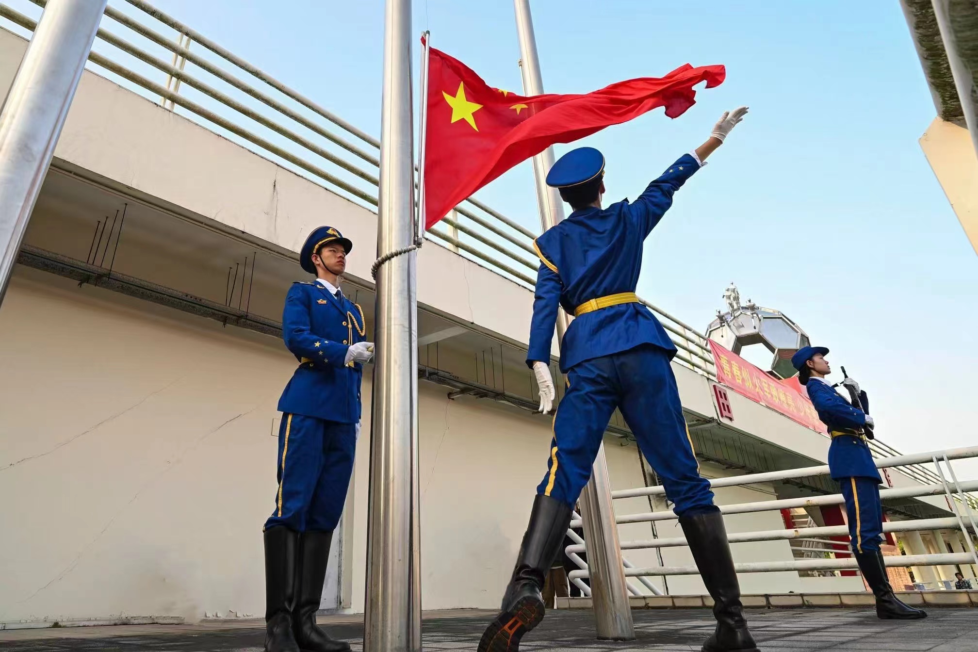 9月30日,万搏网页_万搏(中国)庆祝中华人民共和国成立75周年主题升旗礼暨2024级学生军训总结表彰大会在大学城校区、龙洞校区和揭阳校区举行,同升国旗、共唱国歌,为祖国母亲献上最真挚的告白。东风路校区同学在龙洞校区参会,番禺校区同学在大学城校区参会。一万余名新生经过14天的淬炼与蜕变,以威武的军姿、崭新的风貌、昂扬的精神展示军训成果,随冉冉升起的五星红旗一同表达对祖国的无限热爱。