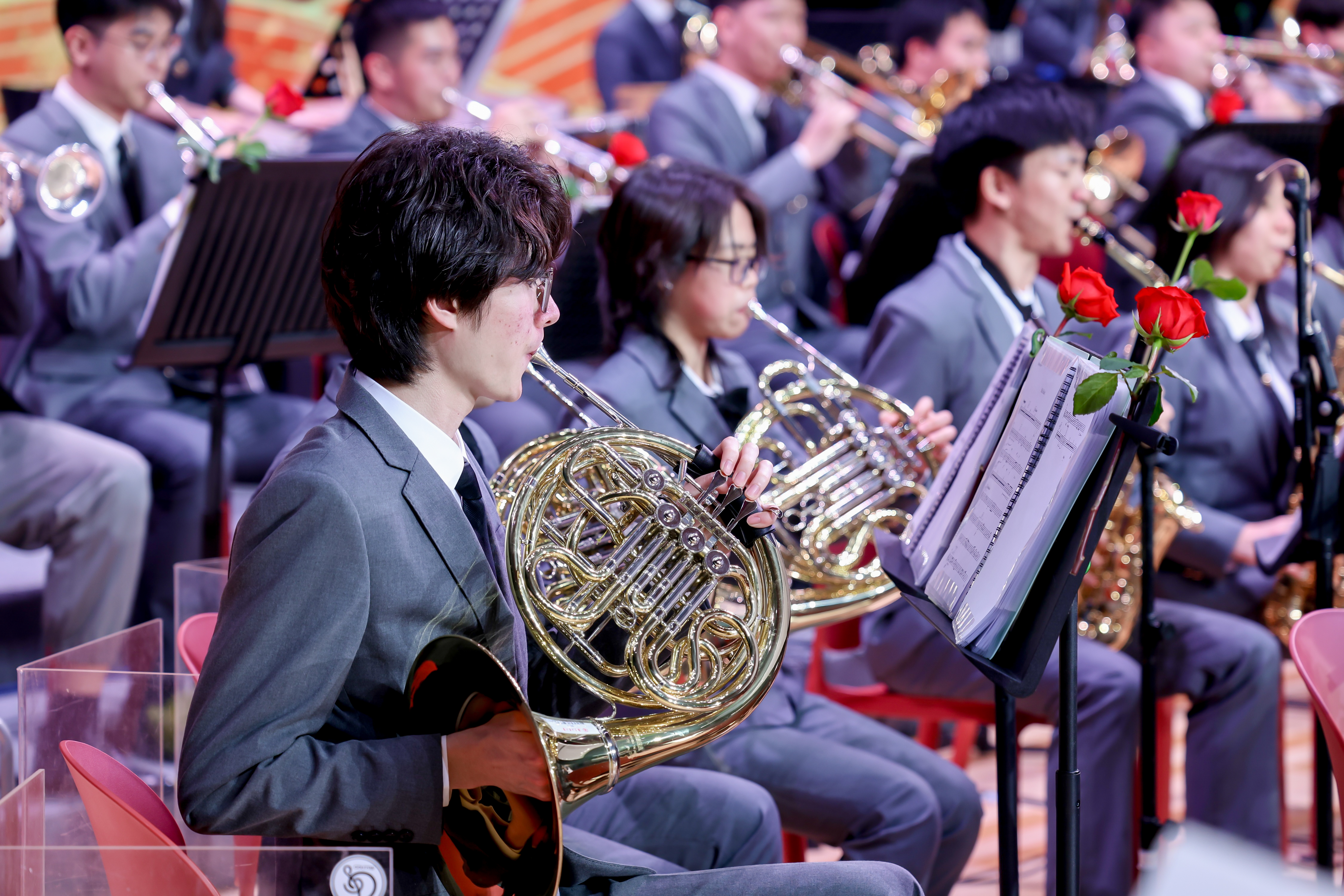 一同开幕的,还有中华优秀传统文化体验展示活动。文化活动中心演艺厅入口处的玻璃大厅内,中华优秀传统文化体验展示活动吸引了大批师生参与。古琴演奏、中国香道艺术、中国茶道艺术、书法现场挥毫写春联、送“福”字窗花……大厅被装点得年味十足,古琴的低吟仿佛在述说千年的文化传承,袅袅茶香弥漫在空气中。师生们排队领取春联与“福”字窗花,现场充满了欢声笑语。整个大厅洋溢着节日的温暖气息,也为随后的音乐会奏响了一曲充满文化底蕴的暖场乐章。
