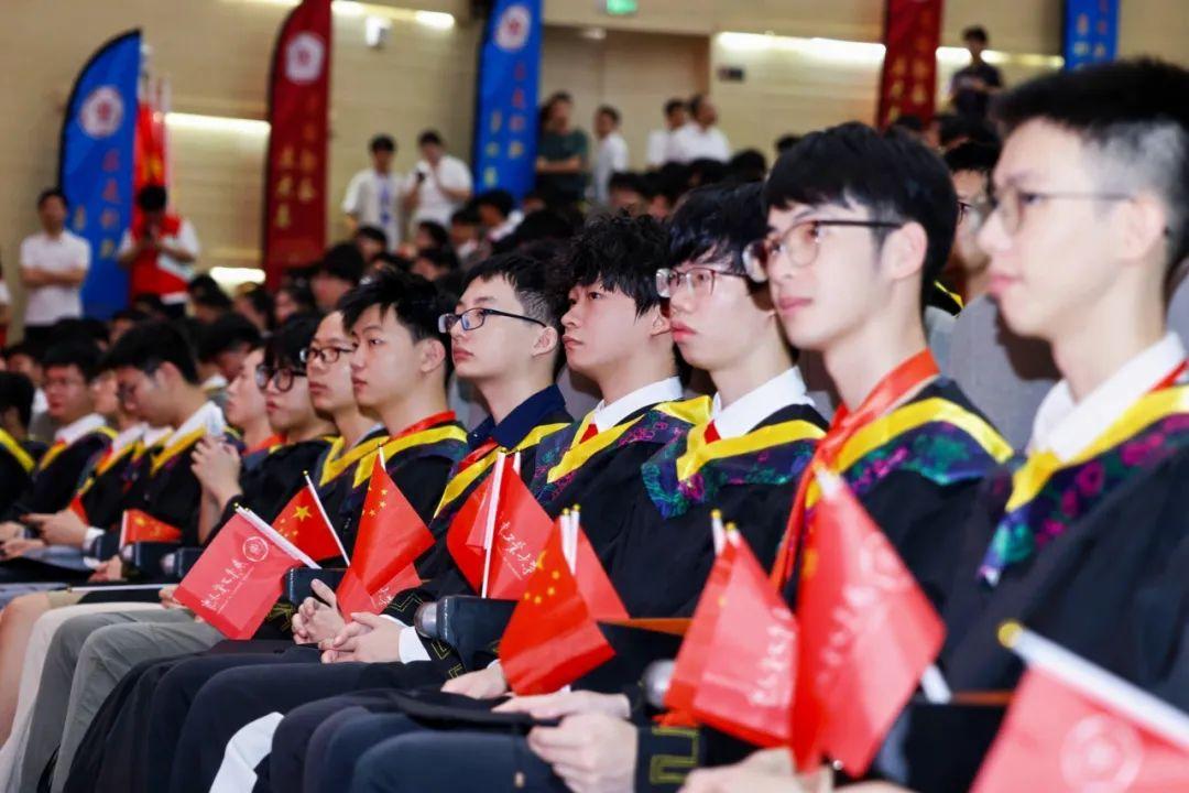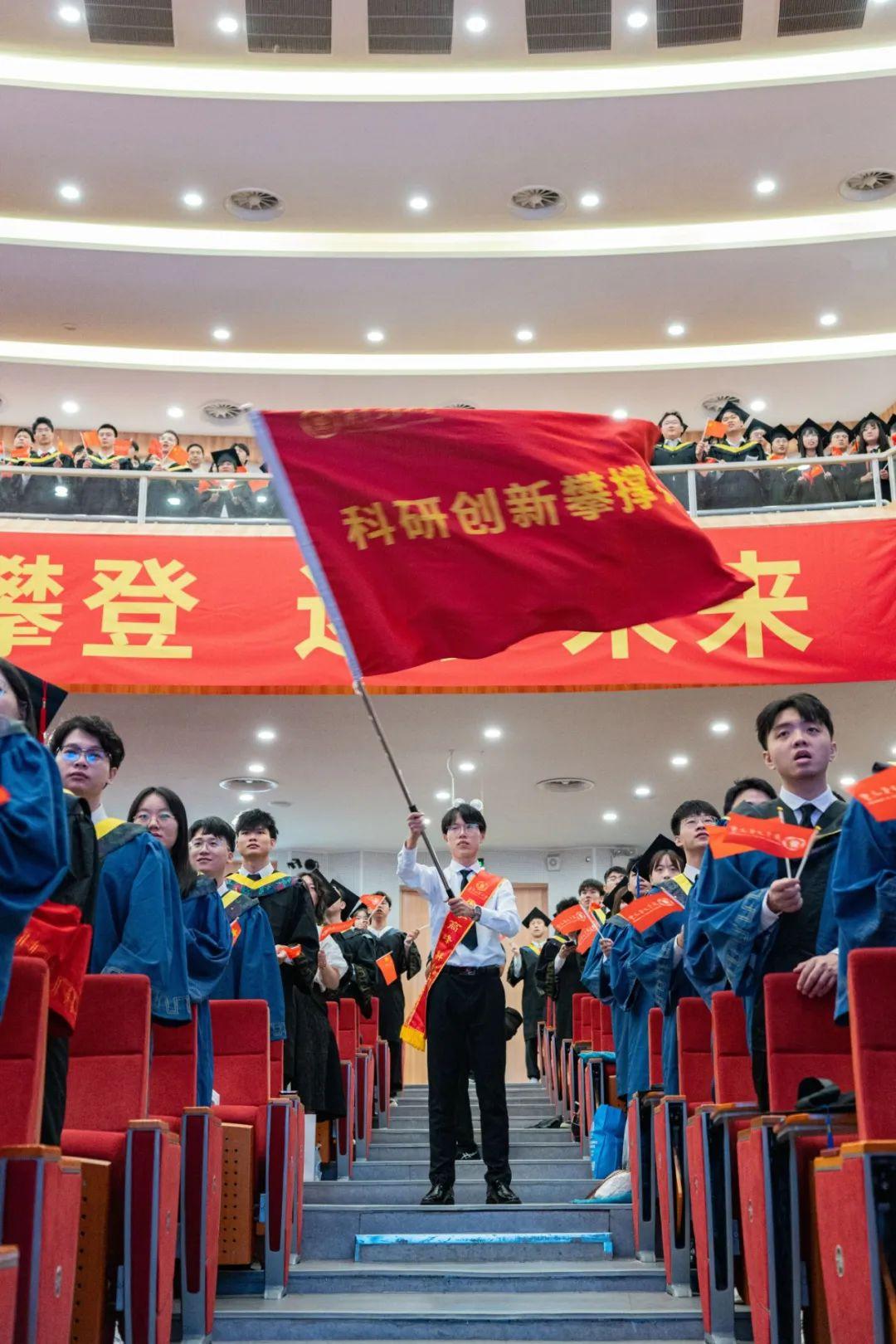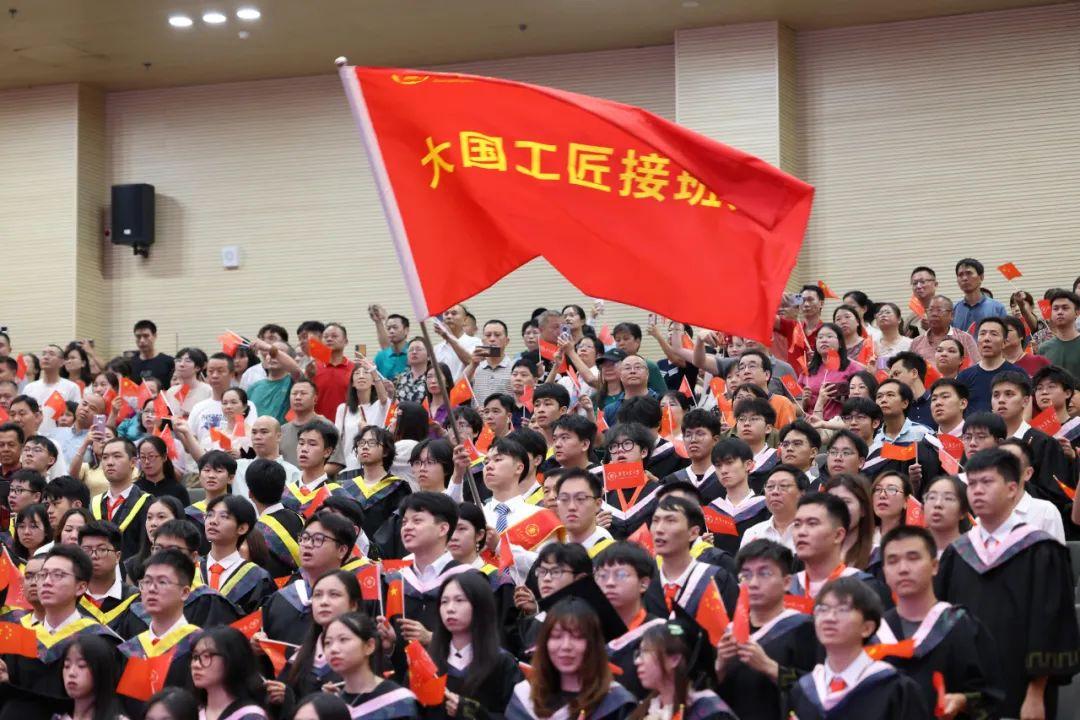 风华正茂,未来可期。同学们带着母校的期望、师友的祝福,即将奔赴祖国各地,开启人生与事业发展的新阶段。由投身不同就业领域的优秀毕业生代表组成的“基层就业服务团”“大国工匠接班人”“科研创新攀撑者”三个毕业生代表团登台接受白建刚授旗。