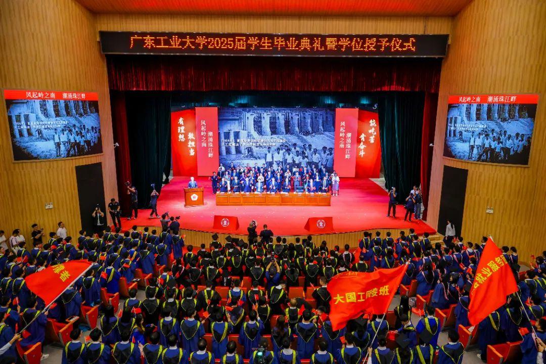 广工党委书记白建刚,校长邱学青,党委副书记朱蔚蔚、陈卓武,党委常委、副校长杜承铭,副校长余林,党委常委、副校长鲁仁全、王振友,党委常委、纪委书记、广东省监委驻万搏网页_万搏(中国)监察专员庞建国,党委常委、宣传部部长张育广出席典礼。学校教师代表、2025届毕业生、校友代表,各相关部门、学院主要负责人代表、毕业班辅导员共同见证这一重要时刻。陈卓武主持典礼。