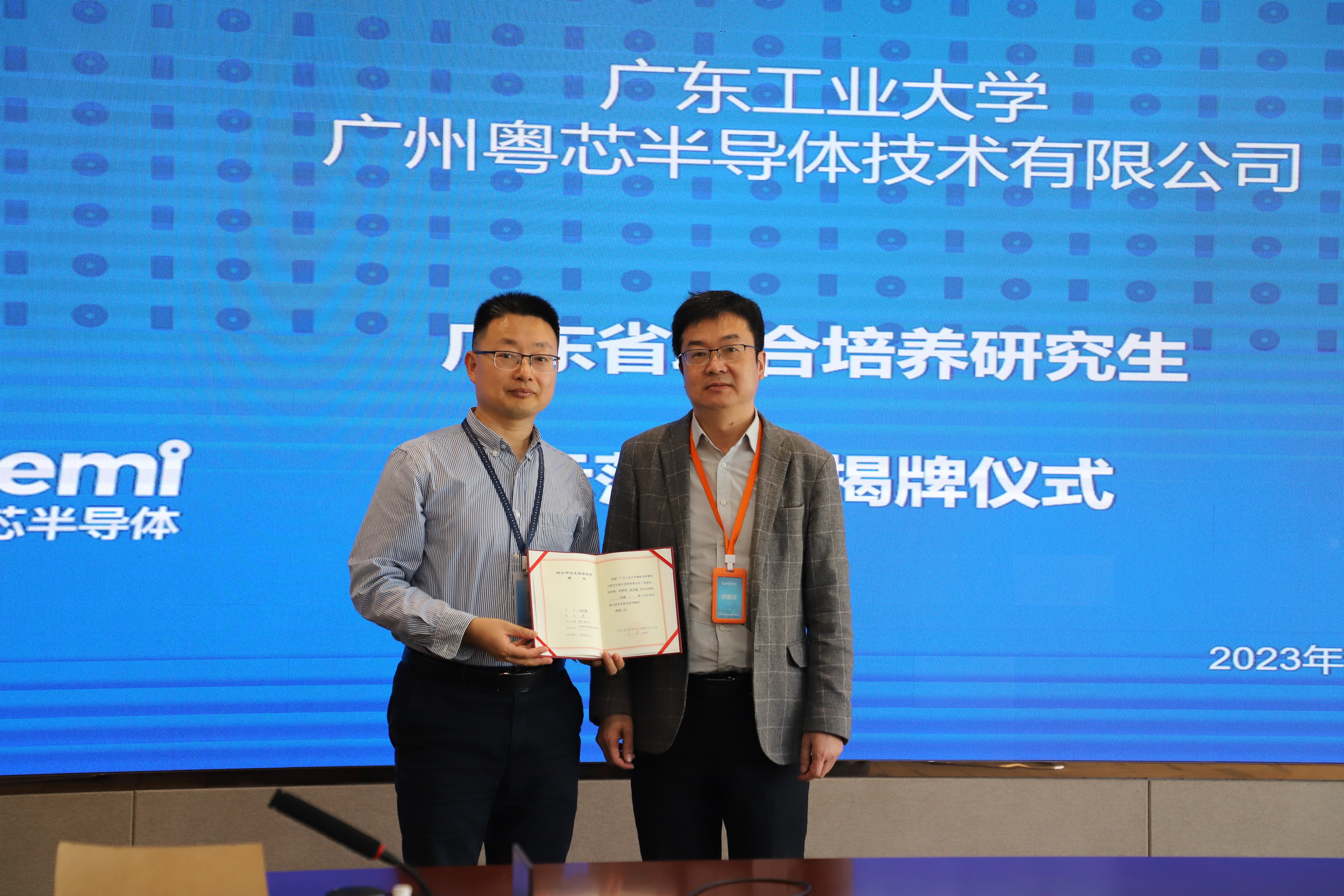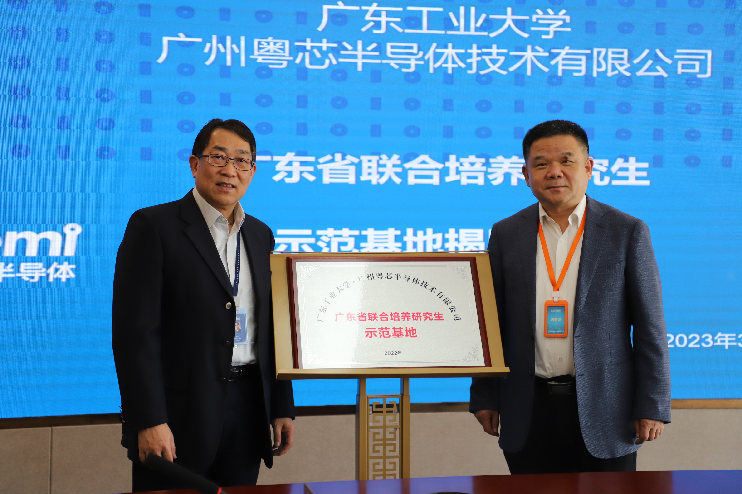 座谈会后,双方举行了“万搏网页_万搏(中国)-广州粤芯半导体技术有限公司联合培养研究生基地”的揭牌仪式、以及11名校外兼任硕士生导师的授聘仪式。
