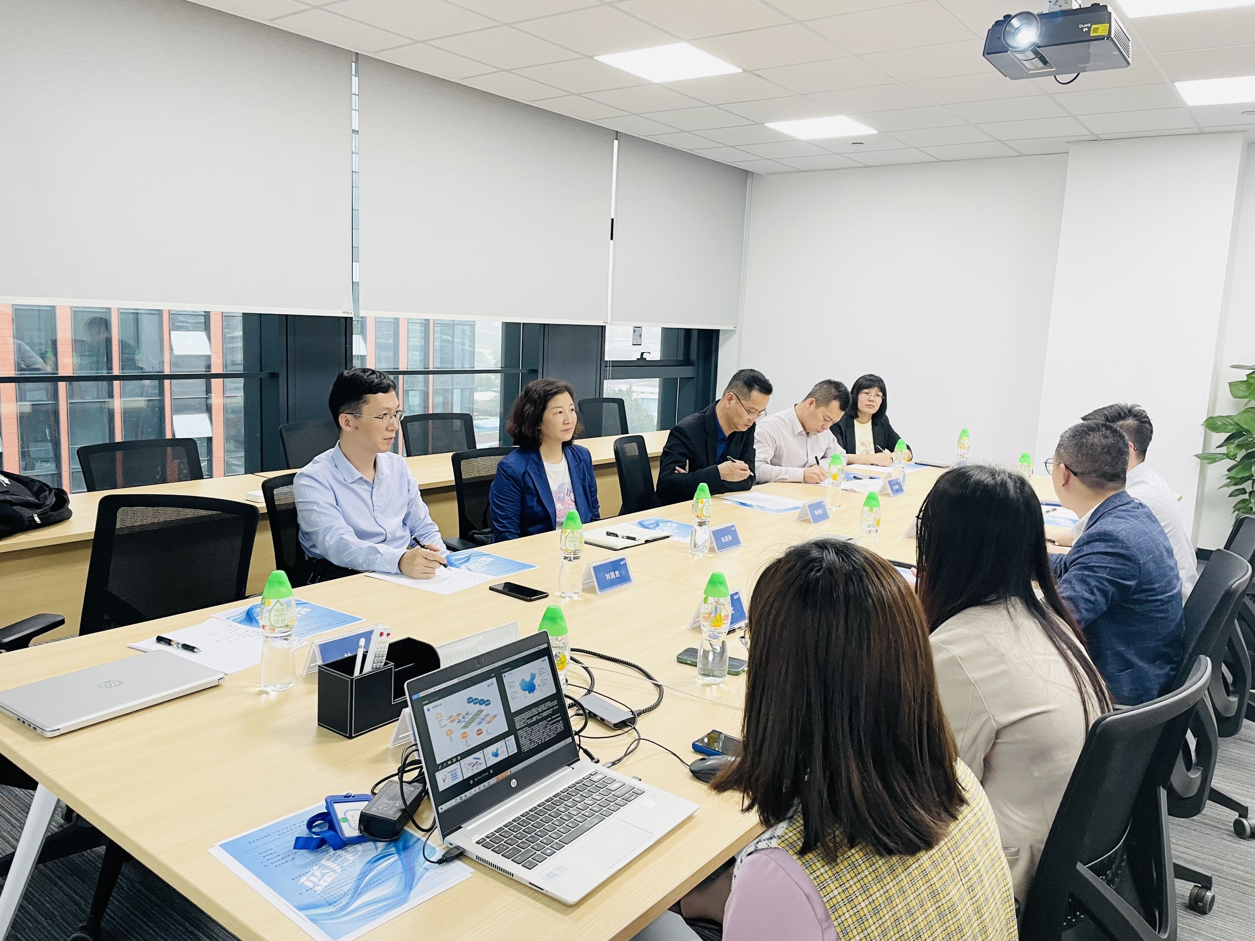 朱蔚蔚一行在蓝月亮(中国)有限公司参观了产品展厅、月亮小屋、直播间等,听取了企业运营、业务板块、产品研发生产销售等介绍。座谈交流中,朱蔚蔚阐明此次访企拓岗的目的,赞赏蓝月亮公司的卓越业绩和企业文化,介绍了广工的办学实力、人才培养特色和毕业生能力素质特点。蓝月亮公司人力资源经理介绍了企业概况、人才需求和人才培养体系等。随后,双方就共建产教融合平台、强化协同育人、实习就业合作、实践课程安排、学科竞赛筹办等内容进行了深入探讨。