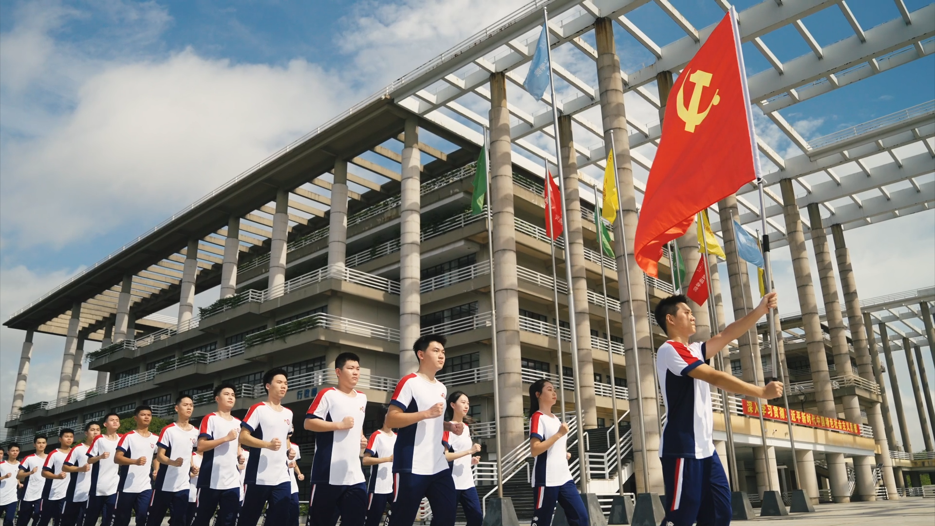 党旗在校区之间的传递象征着坚守传承