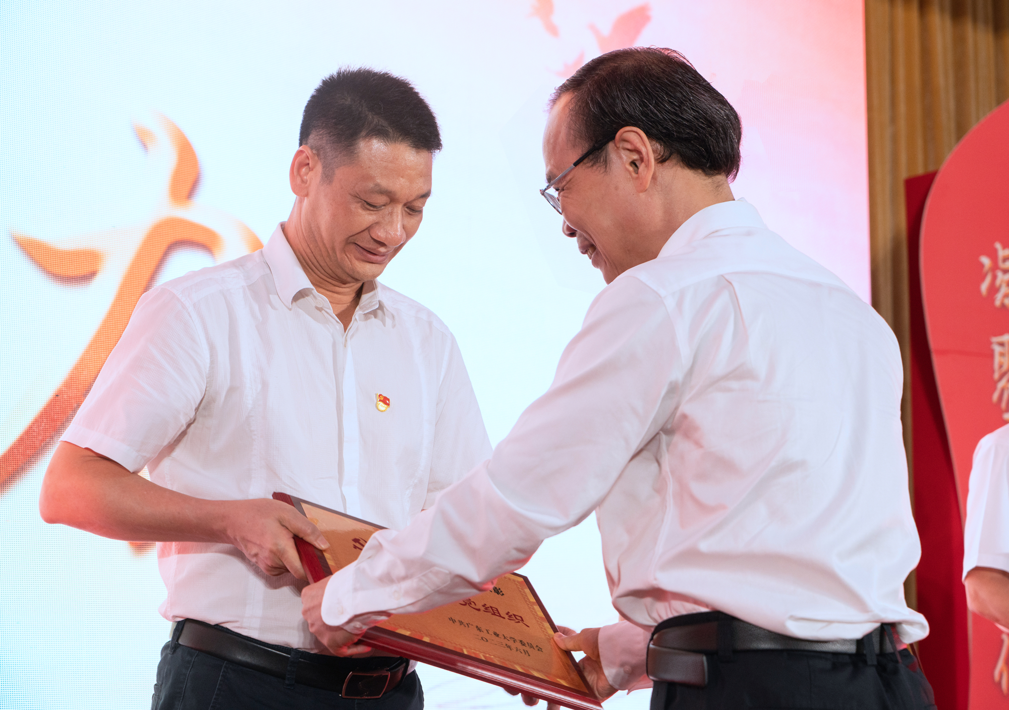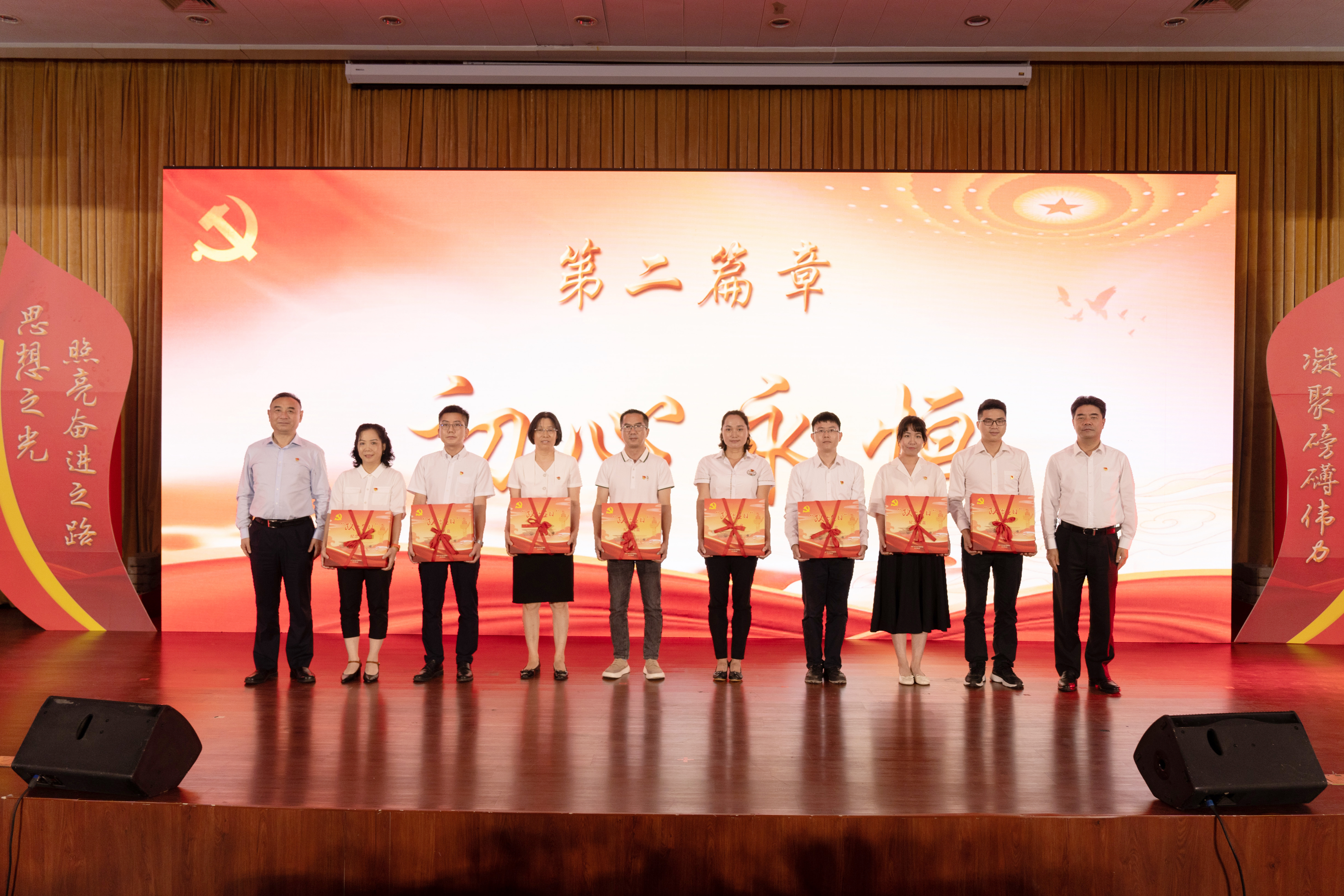 现场举行了“政治生日”仪式,郭杰、胡钦太向6、7月份入党的党员代表赠送了“政治生日”纪念礼盒。