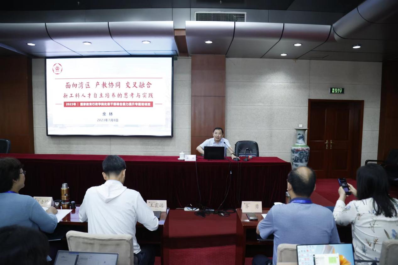 7月8日,应国家行政学院邀请,广工副校长余林教授在国家教育行政学院为“北京建筑大学中层干部综合能力提升专题培训班”授课,此次授课以“面向湾区 产教协同 交叉融合——新工科人才自主培养的思考与实践”为主题,北京建筑大学130余名中层干部学员参与了此次学习。