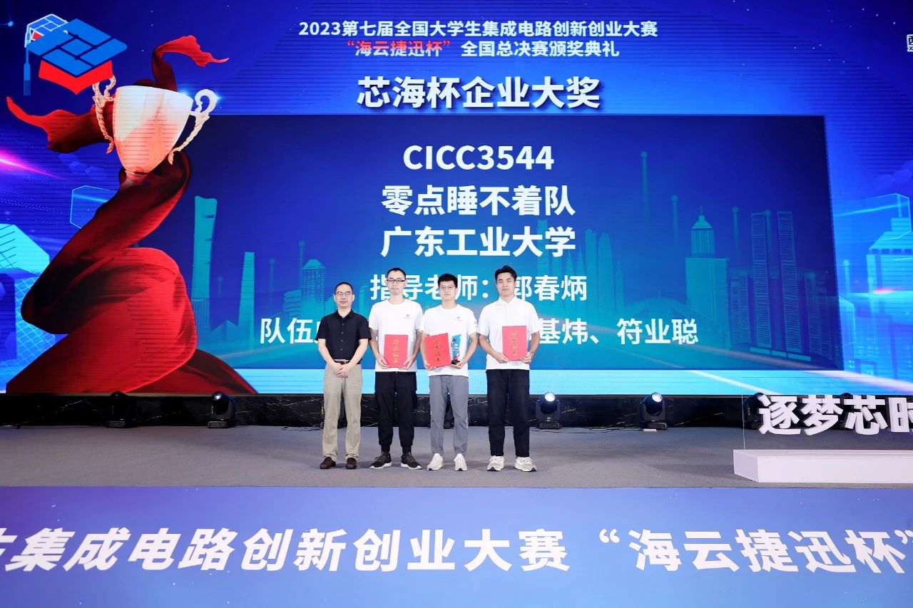 近日,集成电路专业全国最高级别赛事第七届全国大学生集成电路创新创业大赛“海云捷讯杯”全国总决赛在重庆举行,经过激烈角逐,广工学生获全国一等奖3项、二等奖3项、三等奖10项,一等奖及获奖总量均居全省首位。其中,郭春炳教授指导的CICC3544团队斩获芯海杯一等奖(企业大奖)、蔡述庭教授指导的CICC2152团队斩获平头哥杯一等奖、夏益民副教授指导的CICC1108团队斩获飞腾杯一等奖,学校同时荣获优秀组织奖。