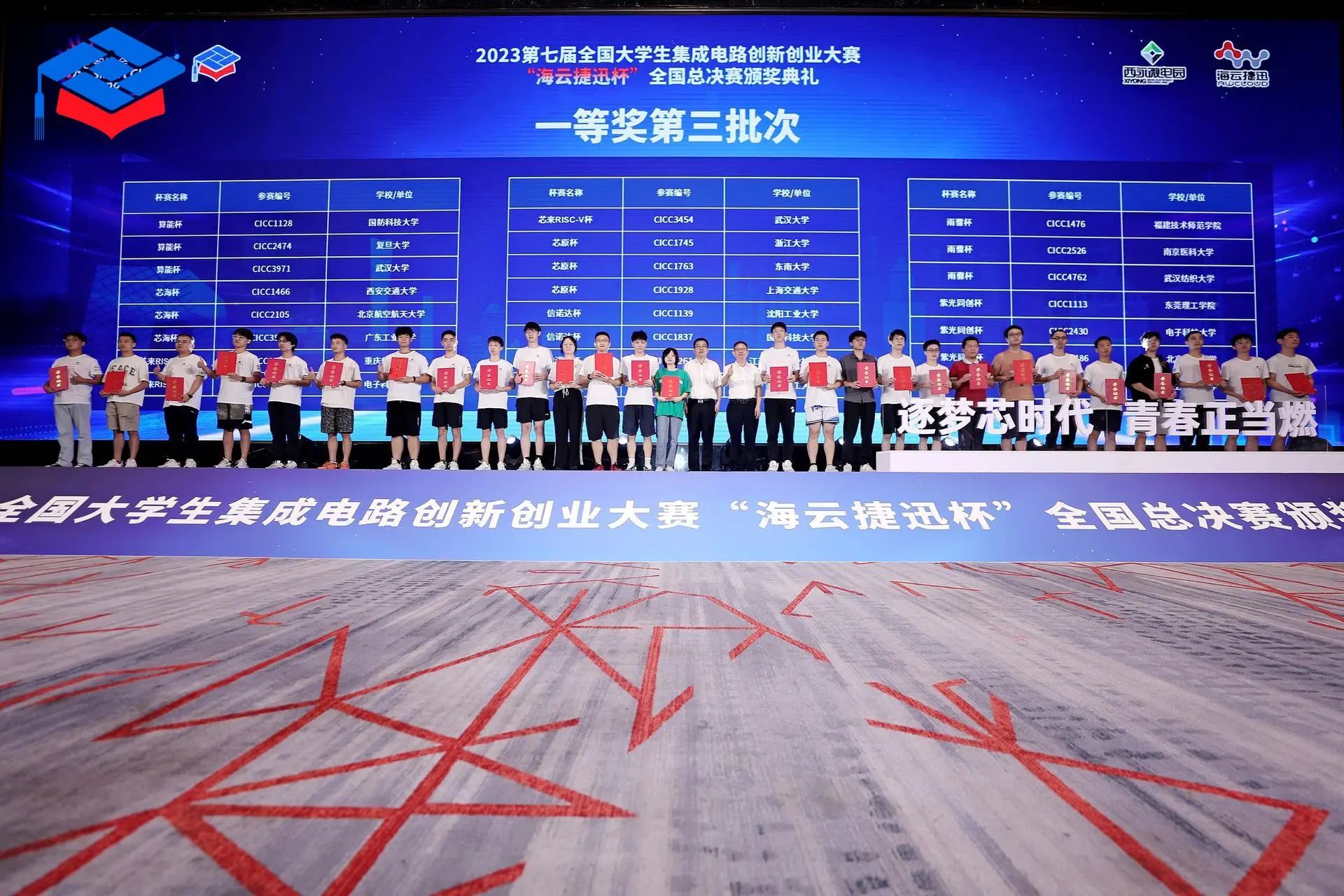 据悉,全国大学生集成电路创新创业大赛是由工信部人才交流中心主办的全国性赛事,连续多年进入中国高等教育学会发布的《全国普通高校大学生竞赛分析报告》竞赛目录,是全国大学生集成电路领域唯一A类学科赛事。第七届全国大学生集成电路创新创业大赛于2023年1月启动,21个企业杯赛方向,共分为8大赛道,覆盖集成电路全产业链,报名队伍超过5000支,参赛师生逾15000人,参与高校超过380所。经过西南、华北、东北、华中、华东、华南、西北七大分赛区选拔,有来自125所高校的469支队伍晋级全国总决赛。学校团队在师生的共同努力下斩获佳绩,在总决赛中得到了评委的认可。这次比赛展示了学校集成电路学科的培养特色及学子风采。