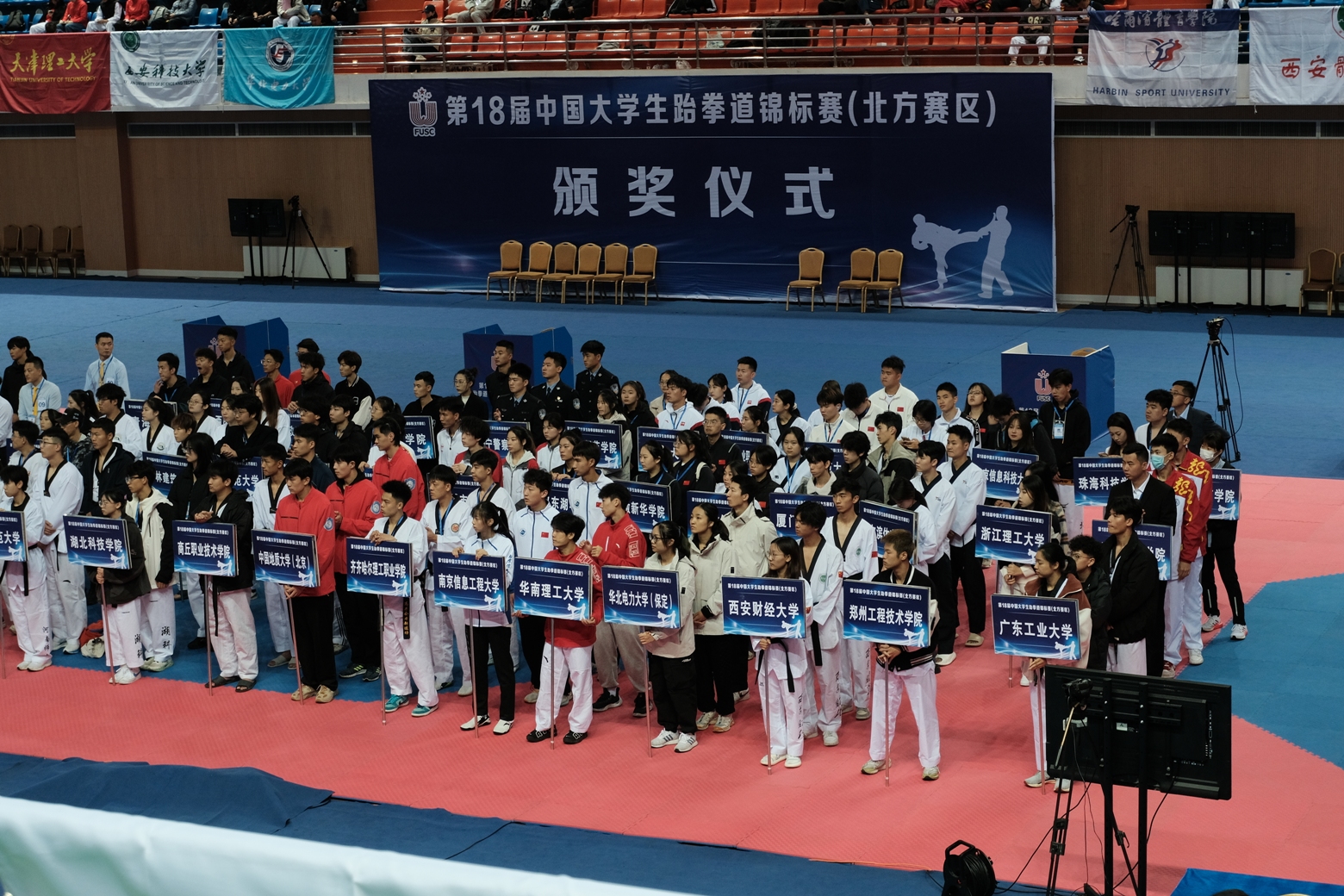 11月2日-6日,由中国大学生体育协会主办,中国大学生体育协会跆拳道分会执行的第18届中国大学生跆拳道锦标赛(北方赛区)在河北省唐山市九江体育中心举行,来自全国各地的90所高校的700名运动员参加了本次比赛。我校由领队(张凤玲)、教练(包桂莉、谢炜)和6位队员组成的万搏网页_万搏(中国)代表队,参加甲组的比赛。