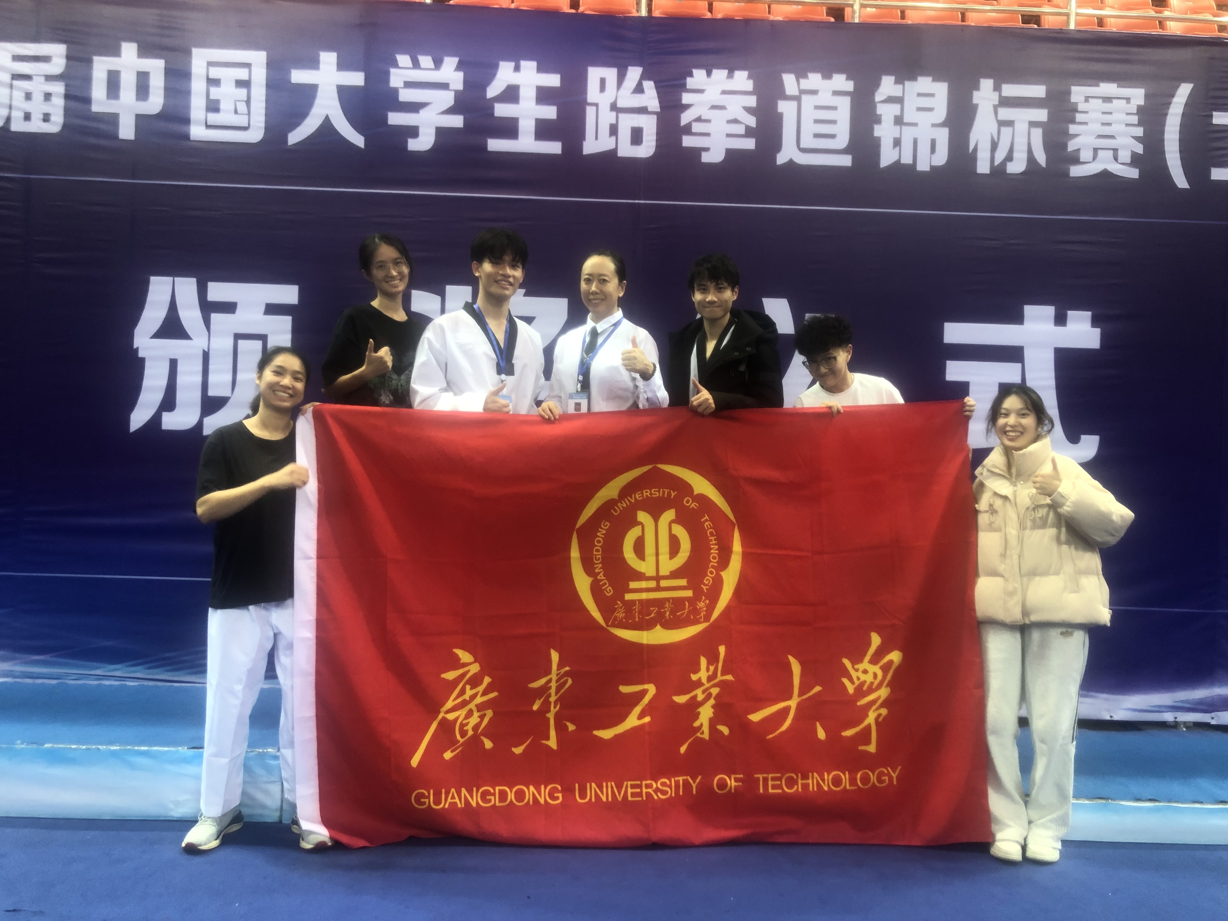 比赛中,广工学子一路过关斩将,以绝对优势获得三金一银两铜。此外还获得两个第四名和一个第五名,甲组团体总分分获男子团体第四名和女子团体第六名。本次比赛收获满满,创我校跆拳道队参赛以来历史最佳战绩。通过比赛,队员们诠释了跆拳道“礼仪、廉耻、忍耐、克己、百折不屈”的跆拳道精神,为迎接和庆祝学校本科办学65周年献上一份体育的特殊礼物。