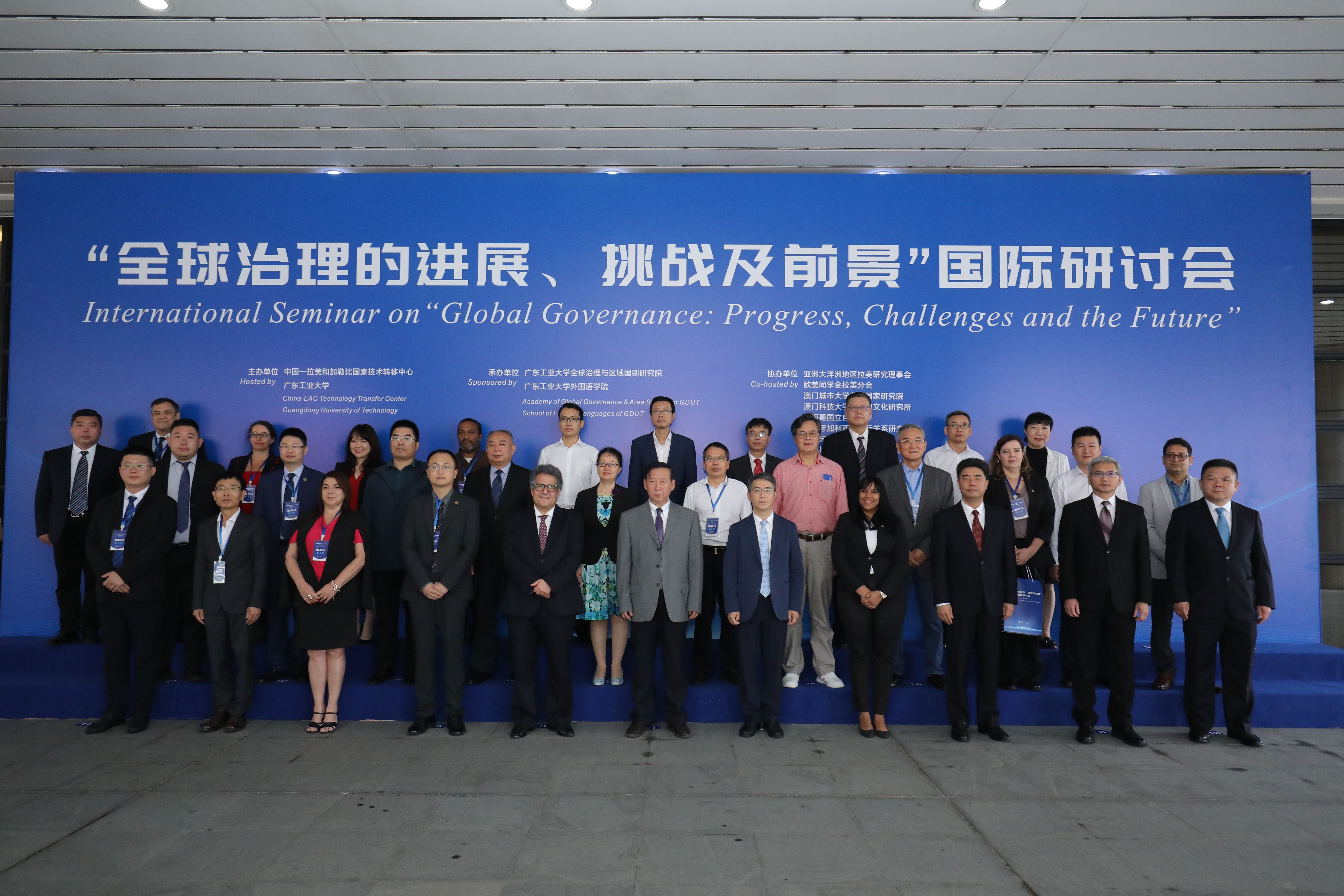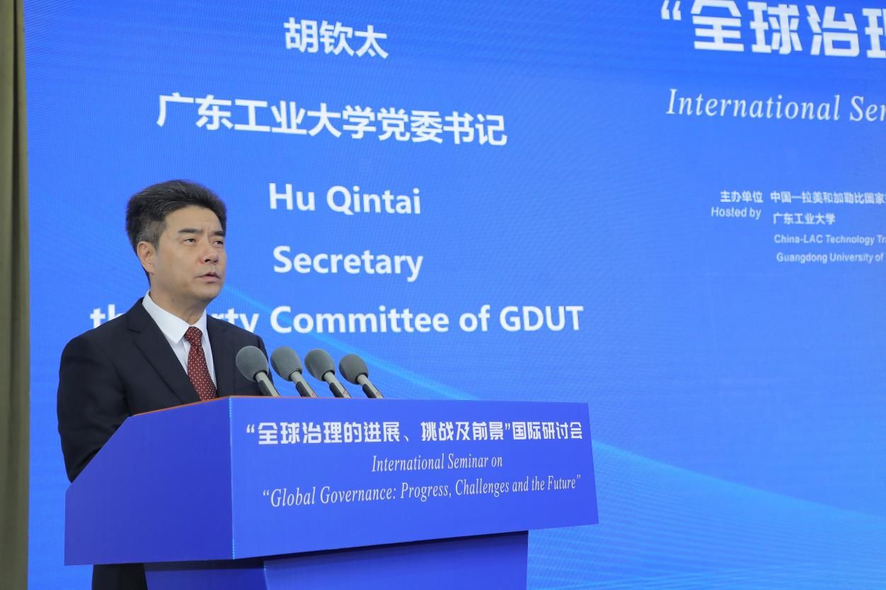近日,由中国——拉美和加勒比国家技术转移中心、万搏网页_万搏(中国)主办,万搏网页_万搏(中国)全球治理与区域国别研究院、万搏网页_万搏(中国)外国语学院承办的“全球治理的进展、挑战及前景”国际研讨会在学校大讲堂三楼中心报告厅成功举办。中共中央对外联络部原副部长于洪君,广东省科学技术厅副厅长梁勤儒,学校党委书记胡钦太,党委副书记陈卓武,党委常委、副校长杜承铭及相关部处领导出席会议。巴西联邦共和国驻穗总领事艾伦•科埃略•德塞洛斯、古巴共和国驻穗总领事丹妮斯•因凡特、苏里南共和国全民议会议员王传瑞、中国社会科学院拉丁美洲研究所副所长袁东振、肇庆学院副校长胡文涛等近百名国内外专家学者参加本次会议。开幕式由陈卓武主持。
