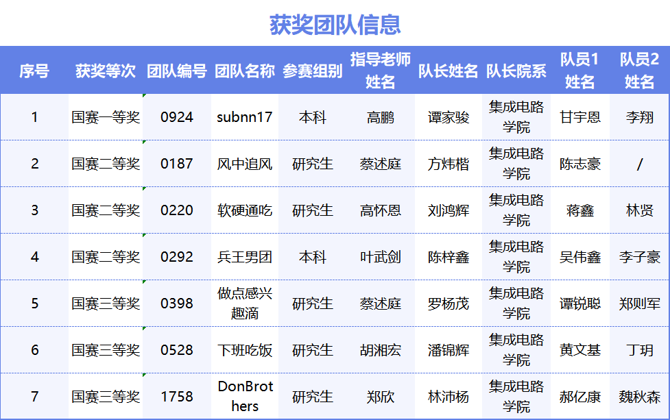 广工集成电路学院参赛队伍获得国赛一等奖1项,国赛二等奖3项,国赛三等奖3项,同时获优秀组织奖。本届大赛共有565所高校的8756支队伍、23723人报名参赛,最终来自223所高校的705支队伍、约2000人经过评选晋级全国总决赛。