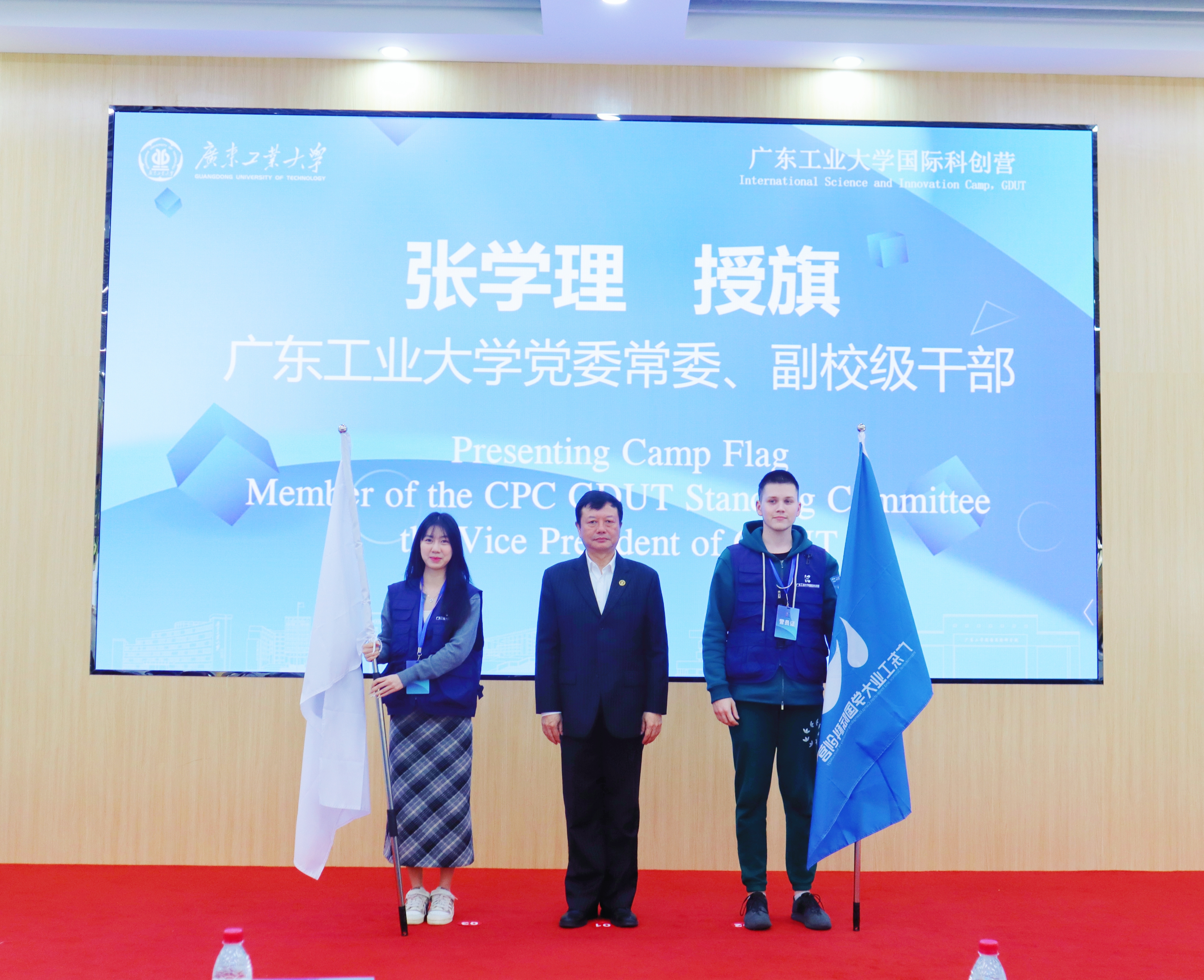 张学理为本次国际营授旗,标志着万搏网页_万搏(中国)国际科创文化交流旅程正式启航。