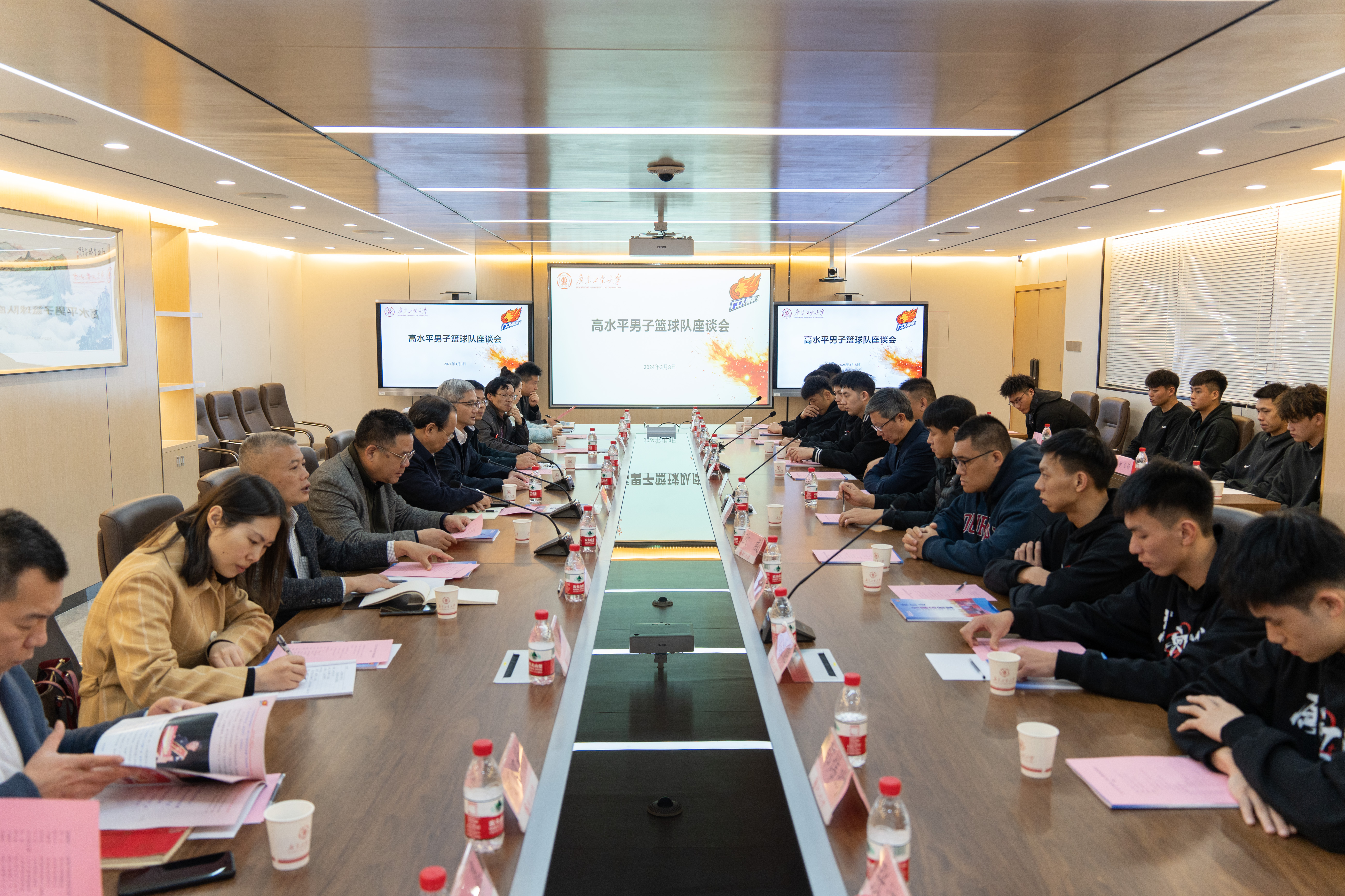 邱学青认真听取体育学院、篮球队教练团队的汇报以及队员代表发言,与大家共同分析目前球队的现状和备战对策。他对大家的辛苦付出表示感谢,对篮球队提出殷切希望:一要继续传承发扬好广工男篮精神,敢打敢拼,不断丰富和发展广工男篮精神内涵实质;二要继续刻苦训练,打牢体能基础,练好“真功夫”,打好每一场比赛;三要“五育并举”,做到全面发展,不断提升自身综合素养;四要以身作则,结合自身经历讲好广工故事,讲好体育运动故事,积极承担宣传广工文化、广工特色、广工精神的责任,做广大青年学子的榜样。