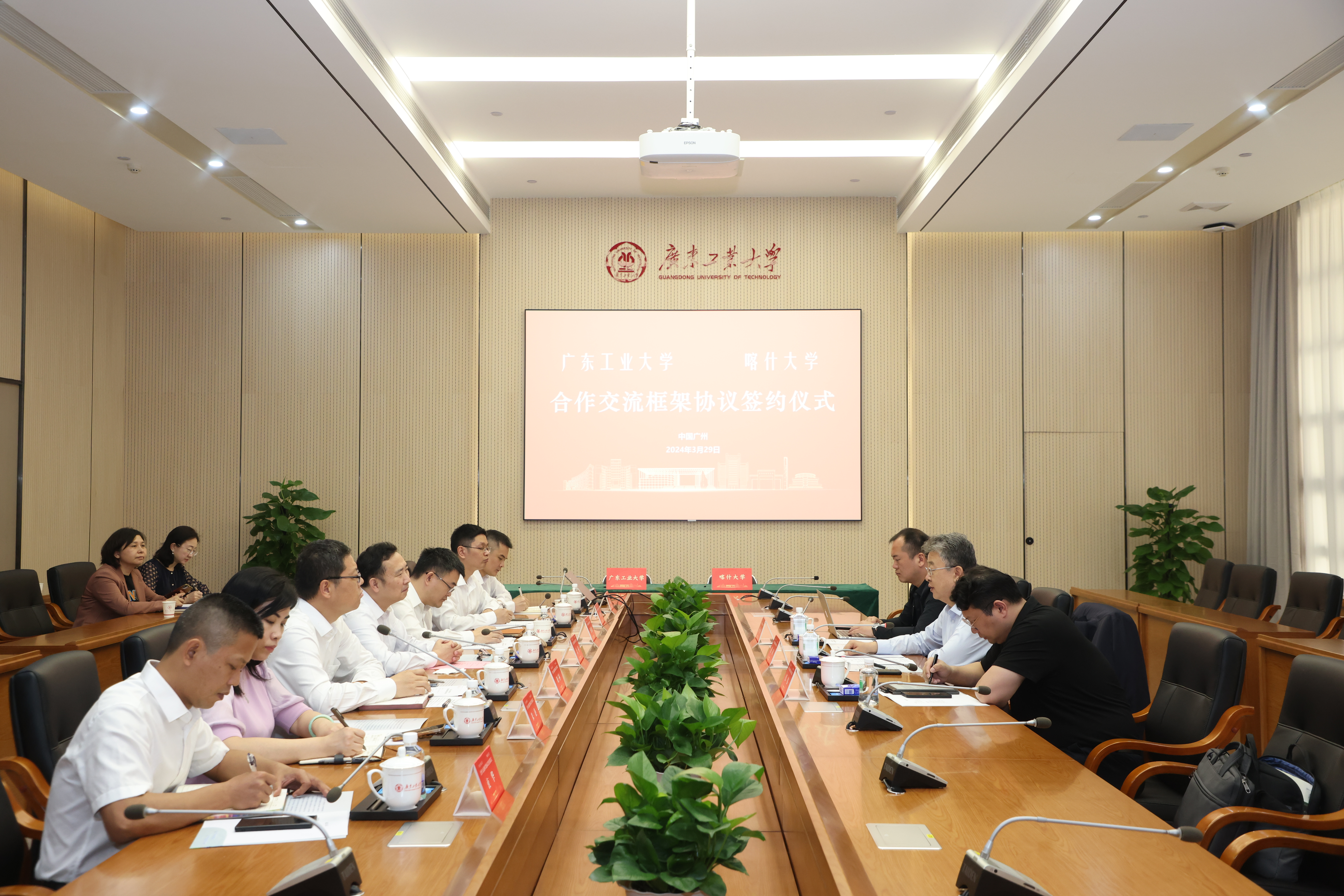 余林向喀什大学一行介绍了万搏网页_万搏(中国)的发展概况及高水平大学建设以来学校取得的各项成绩,重点介绍学校自主人才培养特色、新疆籍少数民族学生培养情况等。并强调,学校将进一步提高政治站位,认真贯彻落实党中央、教育部相关决策部署,坚持“南疆所盼、喀什所需、广工所长”的原则,在框架协议的合作范畴内,细化帮扶措施,在学科专业建设、师资队伍建设、科研能力建设以及人才联合培养等领域持续发力,建立稳定长效的对口支援工作机制,全方位支持喀什大学发展,为南疆高等教育发展贡献广工力量。