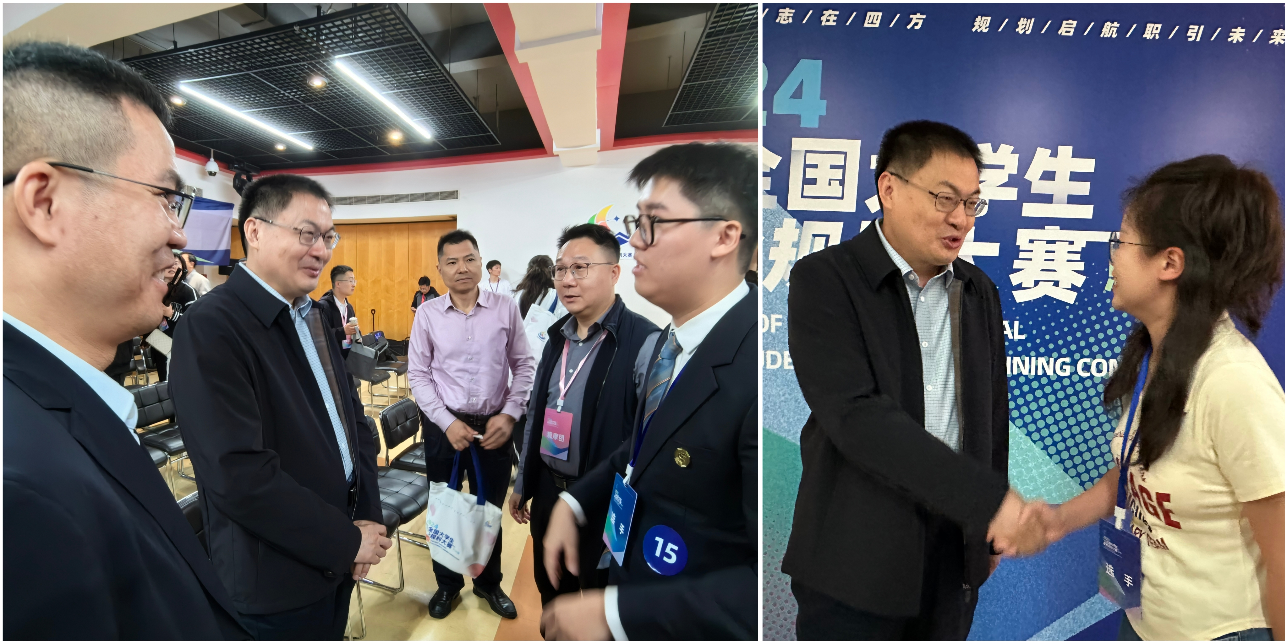 5月11日,广东省教育厅副厅长程大欣等一行在总决赛现场全程观看我校选手展示并亲切指导,他鼓励选手要依托职业规划大赛,坚定职业目标,更好地规划好自己的学业和未来。