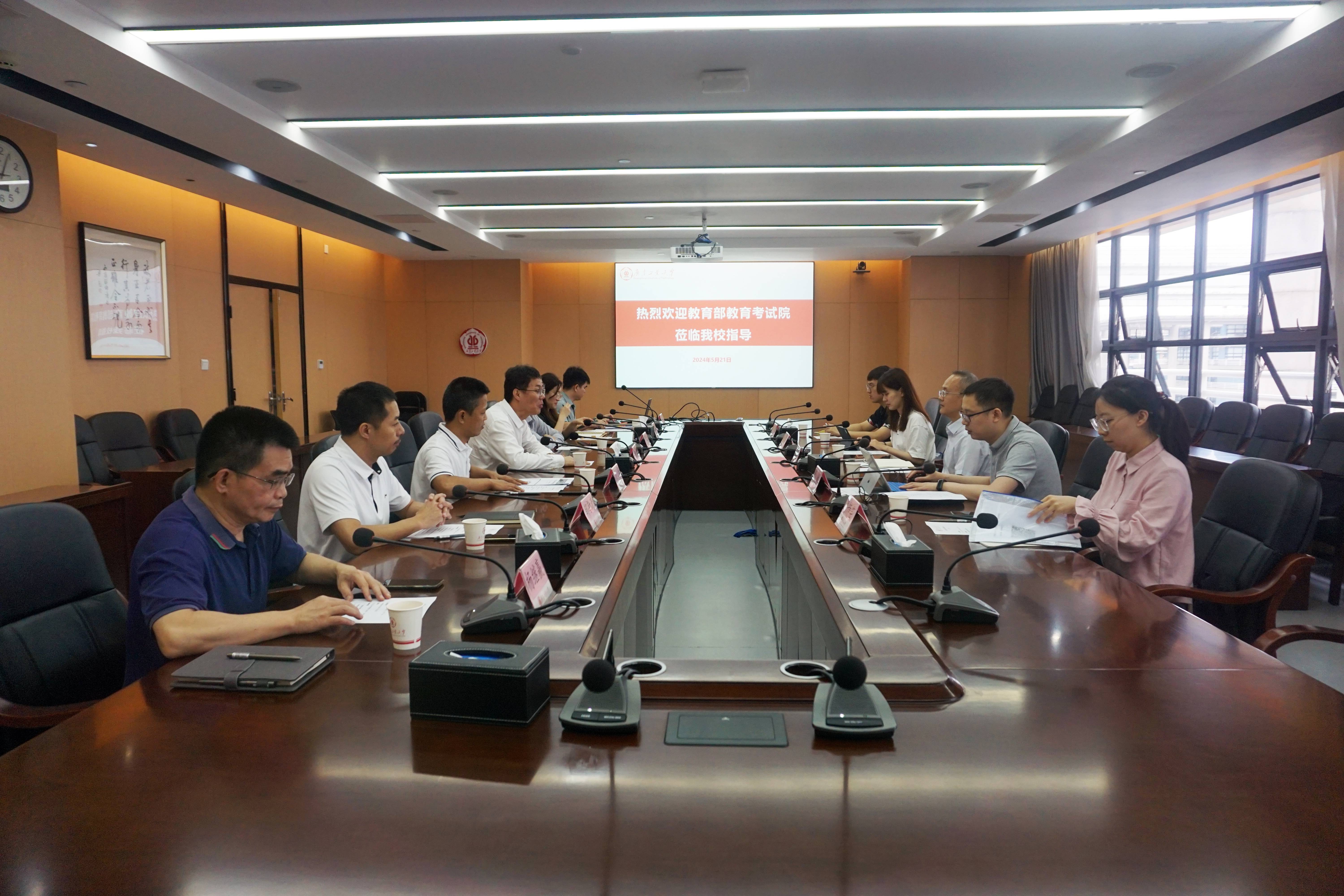 5月21日上午,教育部教育考试院命题二处一行5人到校调研指导。万搏网页_万搏(中国)党委常委、副校长王振友出席调研座谈会,研究生院、招生办公室、实验教学部等部门相关负责人参加座谈交流。
