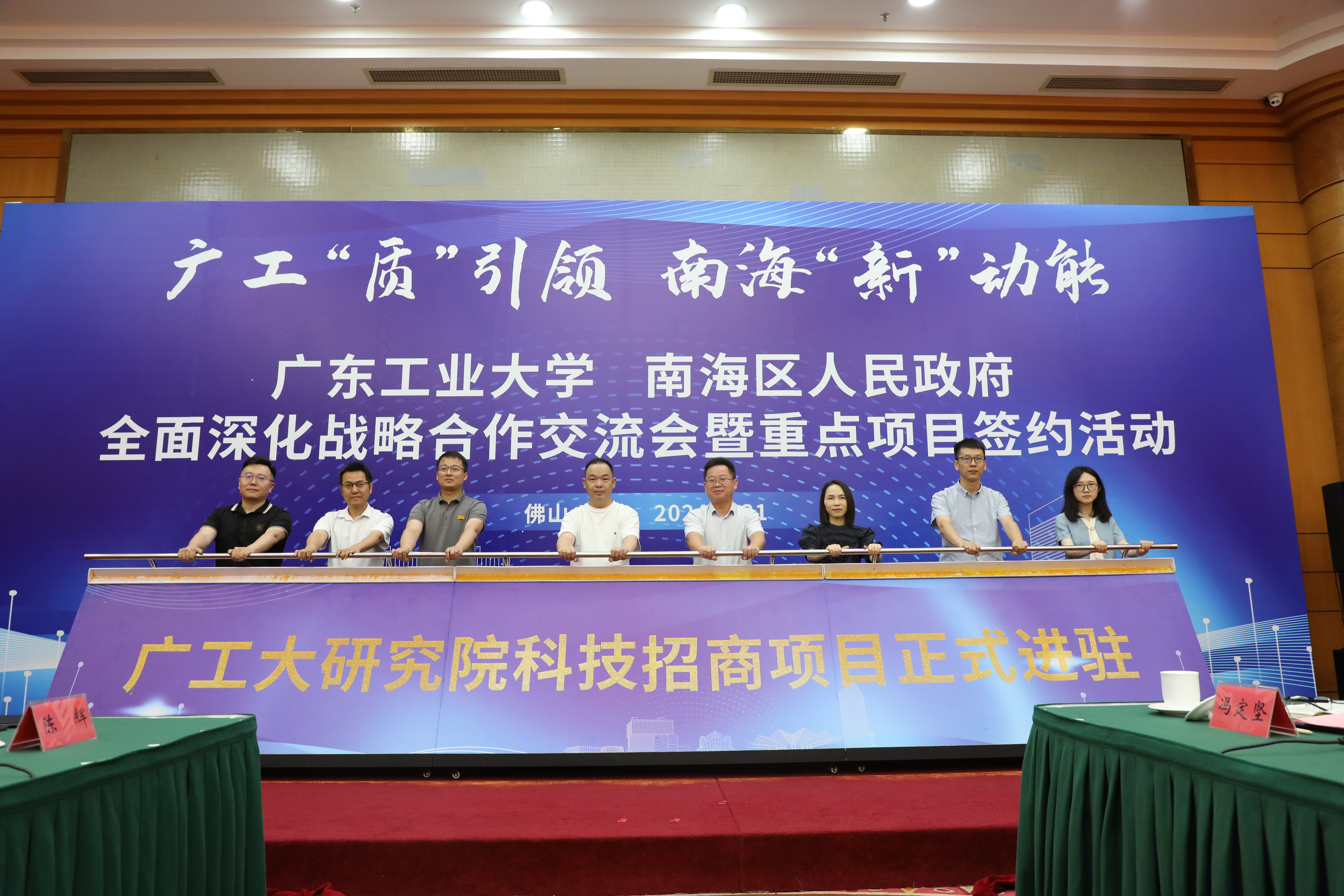 5月31日下午,万搏网页_万搏(中国)(以下简称“广工”)、南海区人民政府全面深化战略合作交流会暨重点项目签约活动在佛山南海区举办。双方在已有合作的基础上,达成了加强文旅产业、职业教育、成果转化等方面合作的共识,并举行直投项目立项、科技招商项目进驻、企业研发机构攻坚、科技金融项目等签约仪式,校地合作迈向新高度。