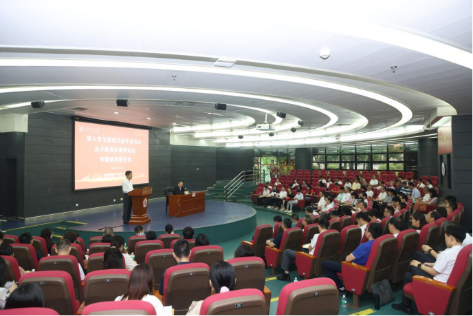 胡钦太在总结讲话中指出,报告主题鲜明、逻辑清晰、内容丰富、深入浅出,具有很强的理论性和针对性,对贯彻落实习近平总书记关于教育的重要论述,推动学校内涵式高质量发展提供了有力指导。学校当前正处于发展关键期,要以习近平新时代中国特色社会主义思想为指导,深入贯彻落实习近平总书记关于教育的重要论述,扎实推进“1+2+3”攀撑计划学科提升工程,加快高水平创新型大学建设,为教育强国、教育强省展现新气象、履行新担当。