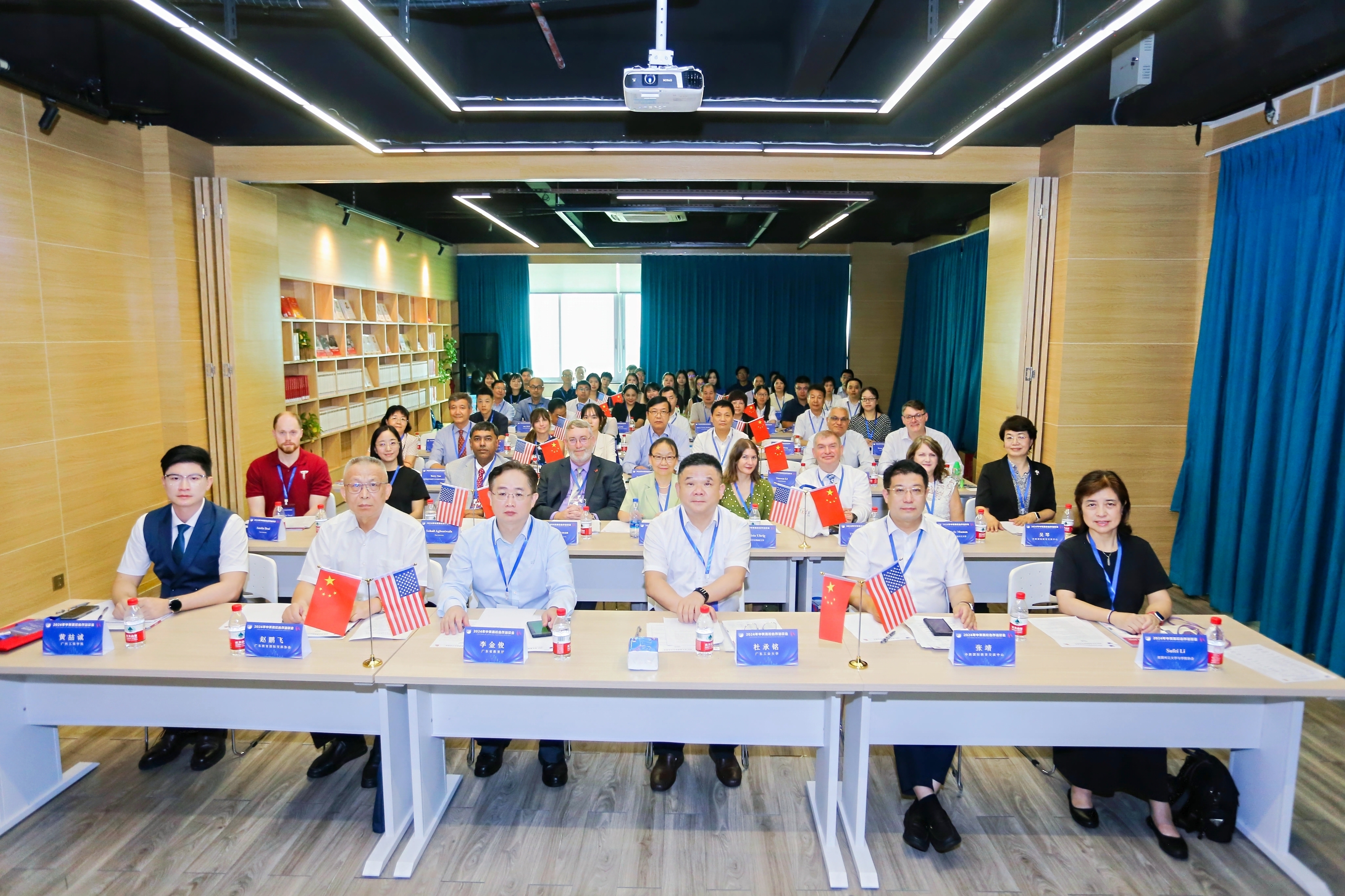 6月24日上午,由中教国际教育交流中心、广东教育国际交流协会主办,广工承办的2024年《中美人才培养计划》121项目中美高校合作洽谈会在学校东风路校区举行。学校党委常委、副校长杜承铭,省教育厅交流合作处、广东教育国际交流协会、中教国际教育交流中心、美国州立大学与学院协会相关负责人出席洽谈会。美方10所高校代表及中方26所高校代表参加本次活动。