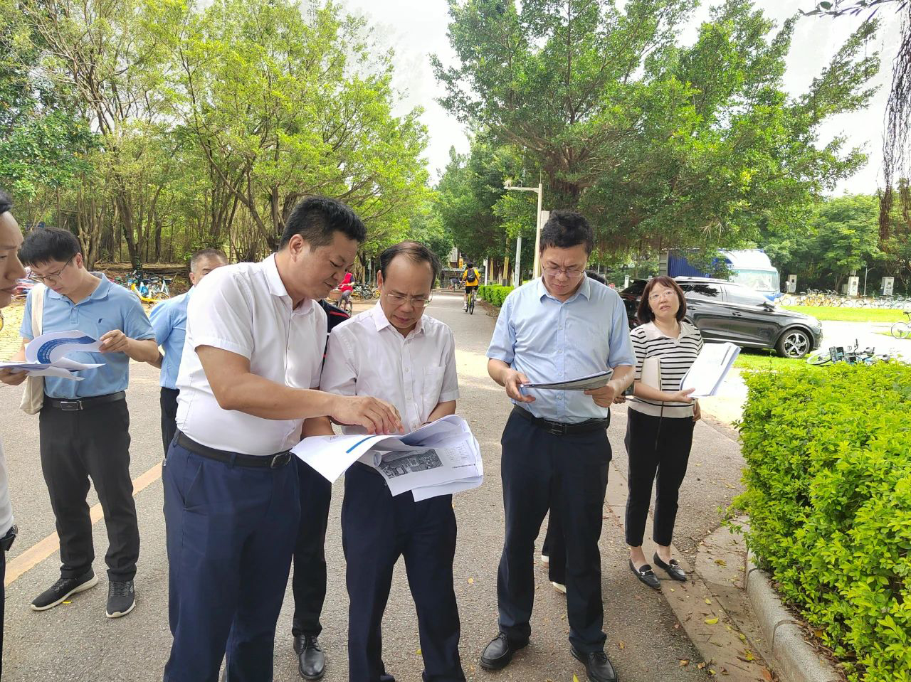 6月28日下午,校长邱学青,党委常委、副校长王振友以及发展规划处、学生工作处、财务处、总务部等相关负责人在大学城校区调研校园基本建设规划工作。