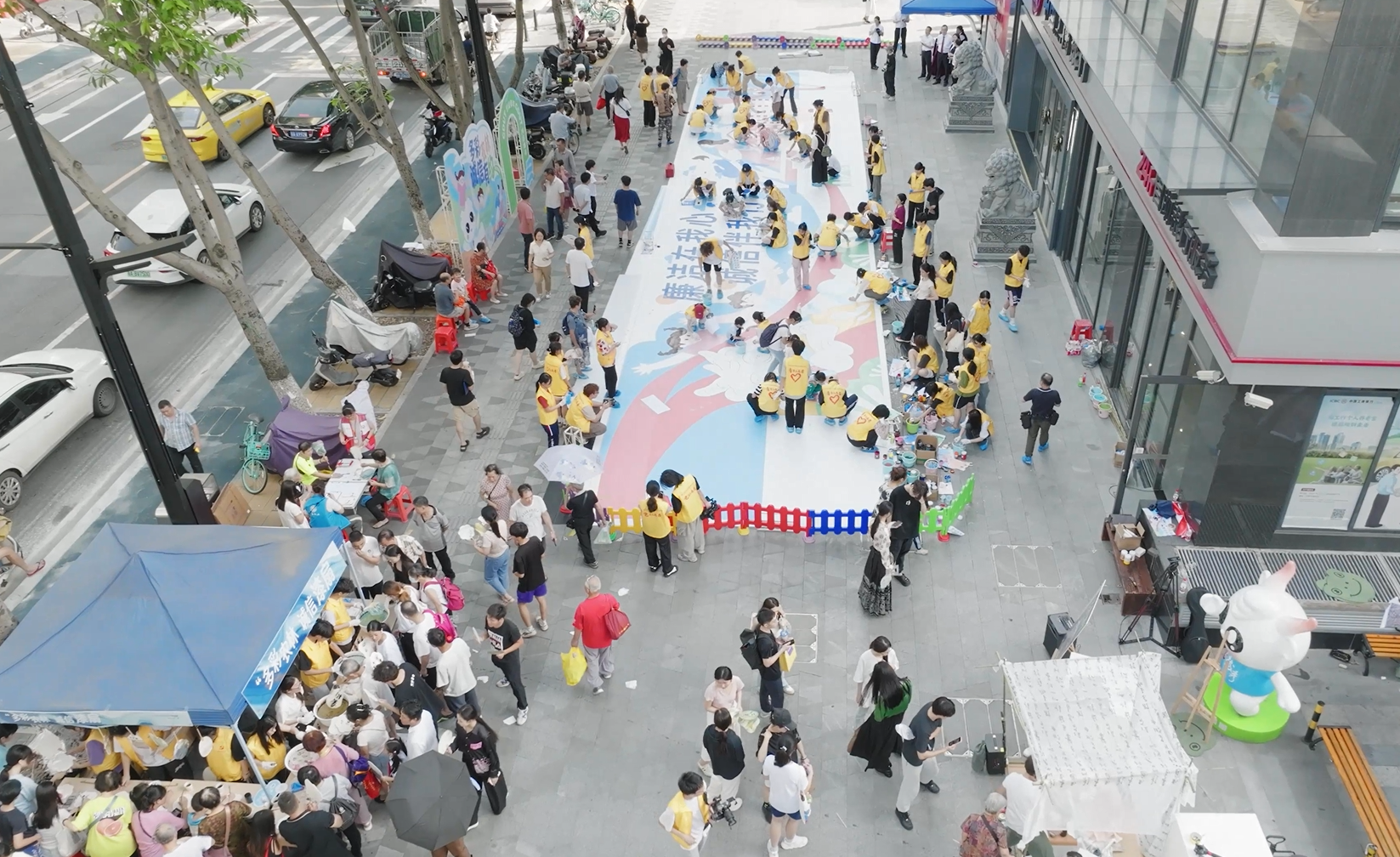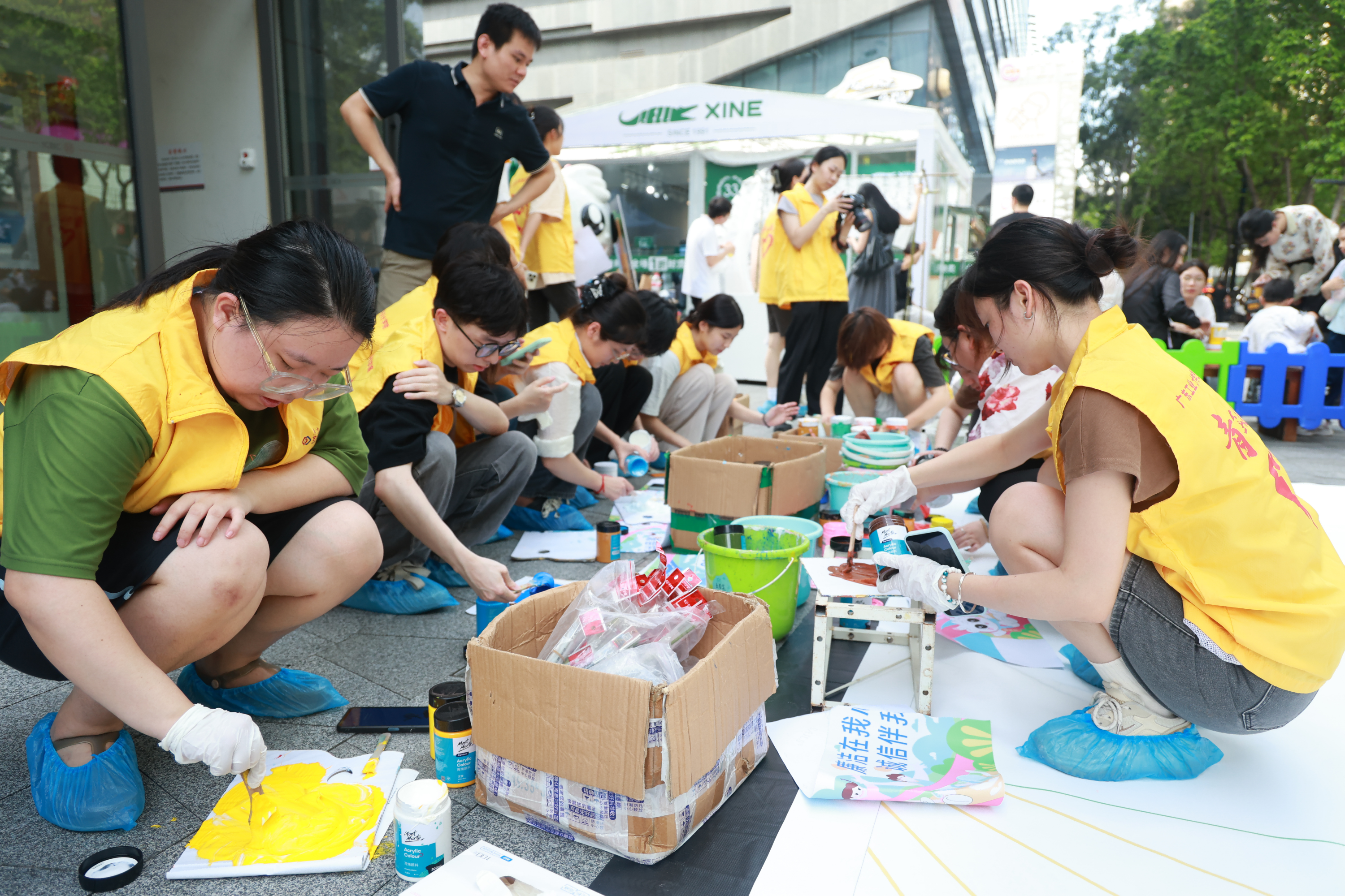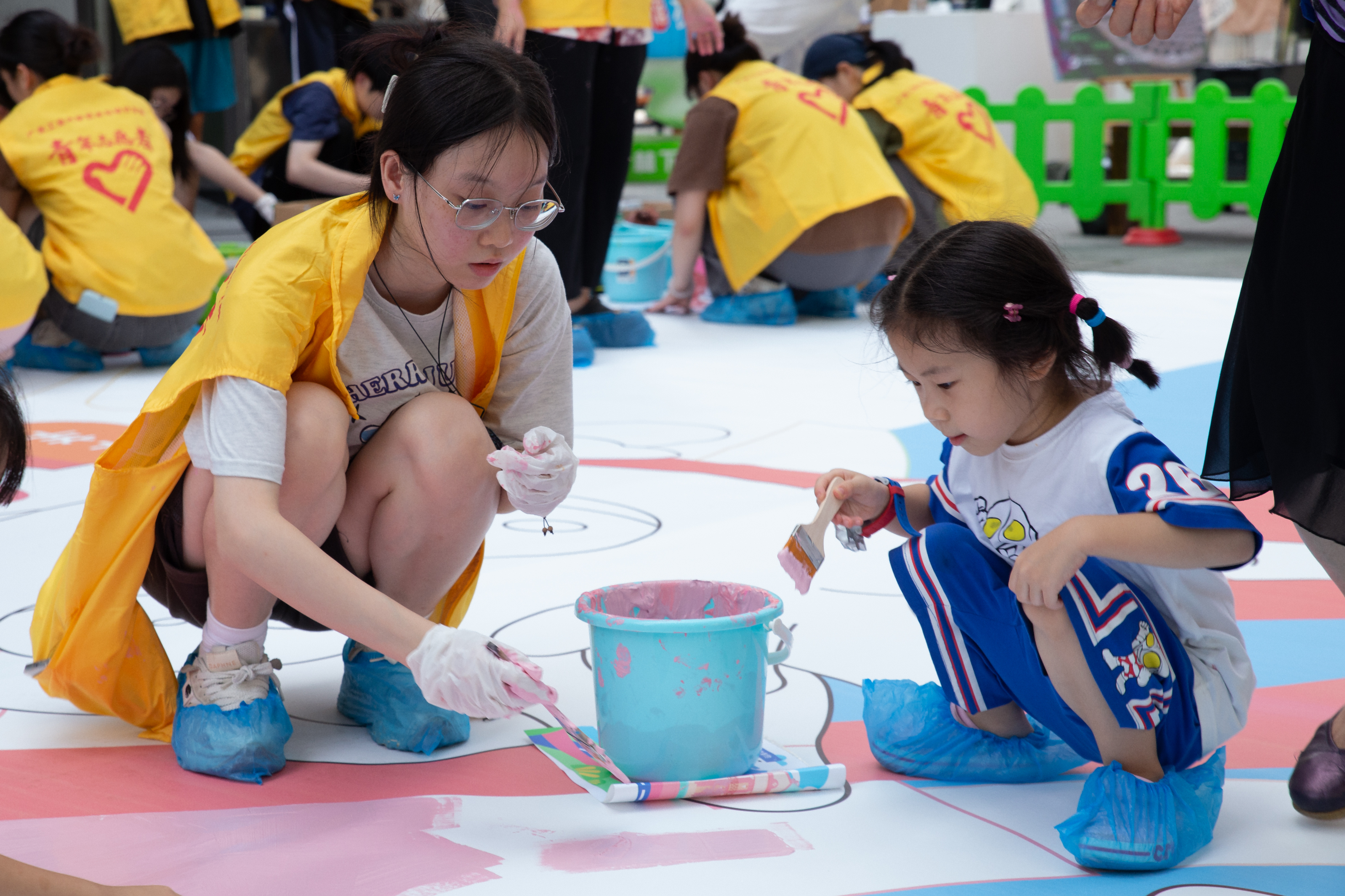 志愿者们与街坊群众共创彩绘