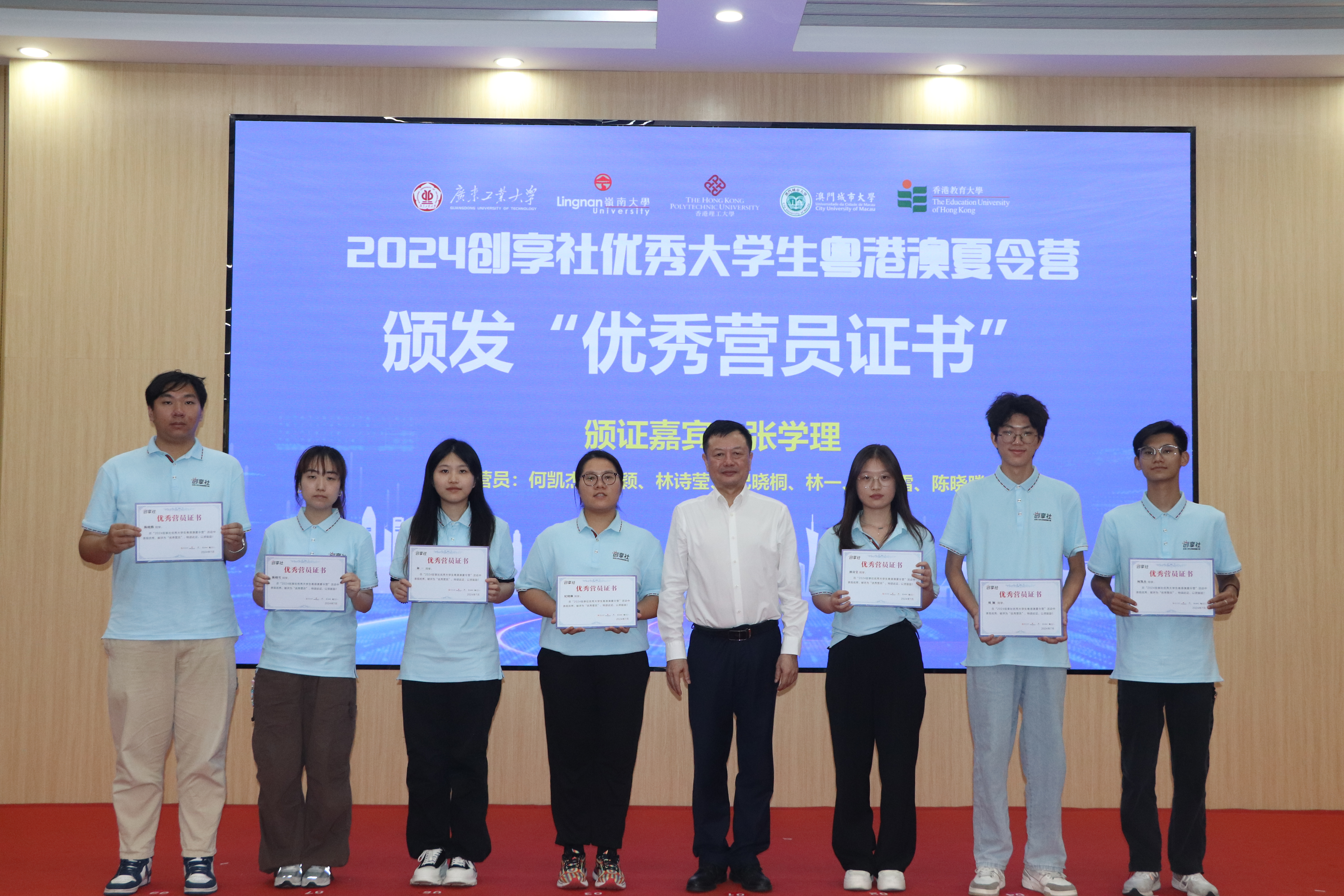 张学理在致辞中提到,本次夏令营内容丰富多彩,不仅涵盖了香港知名高校参观走访、大湾区头部企业参访体验、创新创业交流研讨、乡村振兴调研实践等活动,还开创性地启动了粤港澳大学生“双百杯”乡村振兴创新创业竞赛,打造了粤港澳大湾区高校协同、港澳青年与内地青年共同参与、助力双百行动走深走实走细的新模式、新路径、新品牌。他强调,港澳协同、湾区融合,是时代背景,是大势所趋,希望三地的同学们加强对话交流、加强实践合作,共同增强民族自豪感和自信心,抓住时代发展机遇,为新质生产力的发展和中国式现代化的实现作出粤港澳大学生应有的贡献。