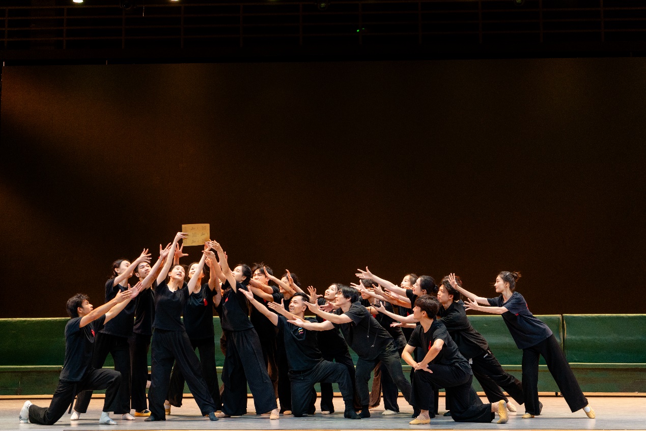 与会专家对排练成果给予了充分肯定,并对下一阶段的排练工作提出了更高的要求。专家建议剧情基本的叙事脉络以话剧贯穿,以舞蹈作为辅助并配上情景表演。舞蹈是剧中关键剧情的重要情绪渲染段落,在接下来更细致的二期合成排练中,需要有各段形式感的对比,才能更好的推进剧情,达到情感共鸣的高潮。