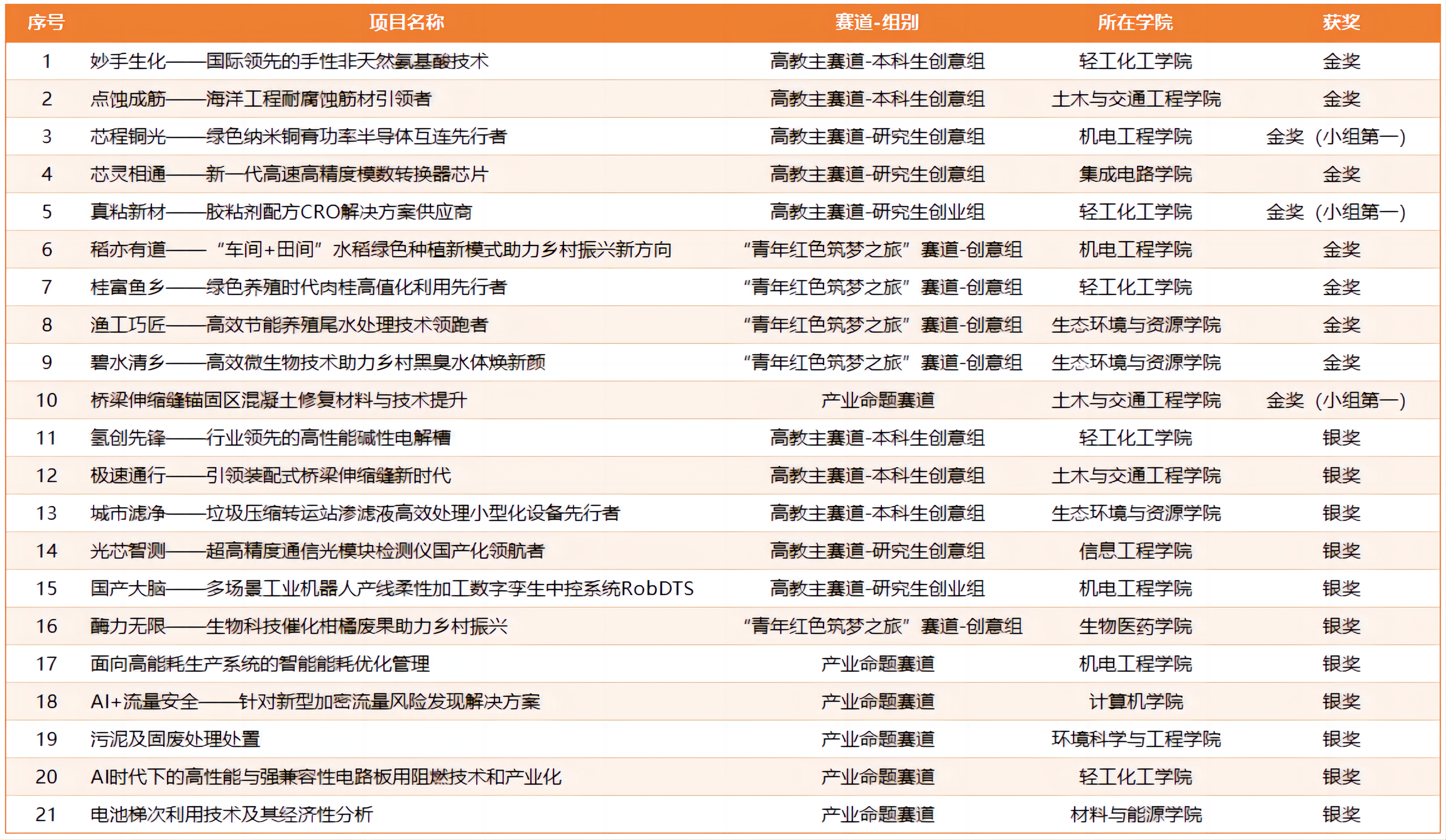 获奖项目信息