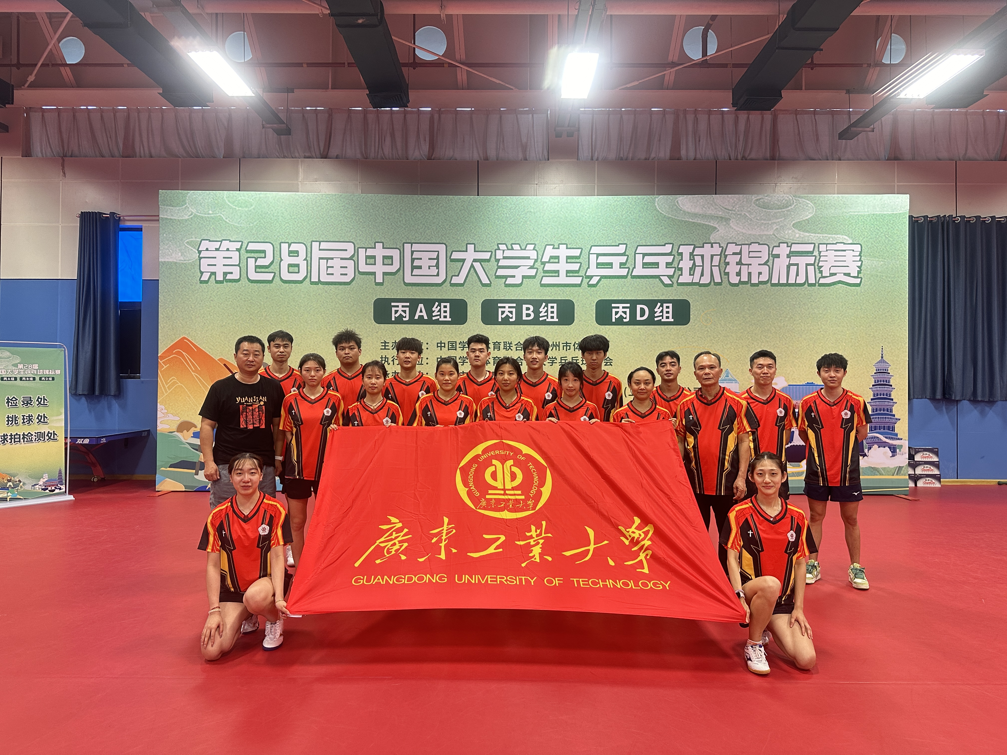 8 月 12 日至 20 日,第 28 届中国大学生乒乓球锦标赛在福建省福州市举行。本次比赛由中国大学生体育协会、福州市体育局主办,福州市乒乓球协会承办,并由中国大学生体育联合会大学乒乓球分会执行。作为我国大学生乒乓球锦标赛中仅次于超级组水平的重要比赛,吸引了来自北京大学、上海交通大学等29所高校近400名运动员参加本次比赛。比赛涵盖男女团体、男女单打、男女双打以及混合双打等七个项目。广工健儿在比赛中团结协作,敢打敢拼,以优异表现勇夺2金1银3铜。