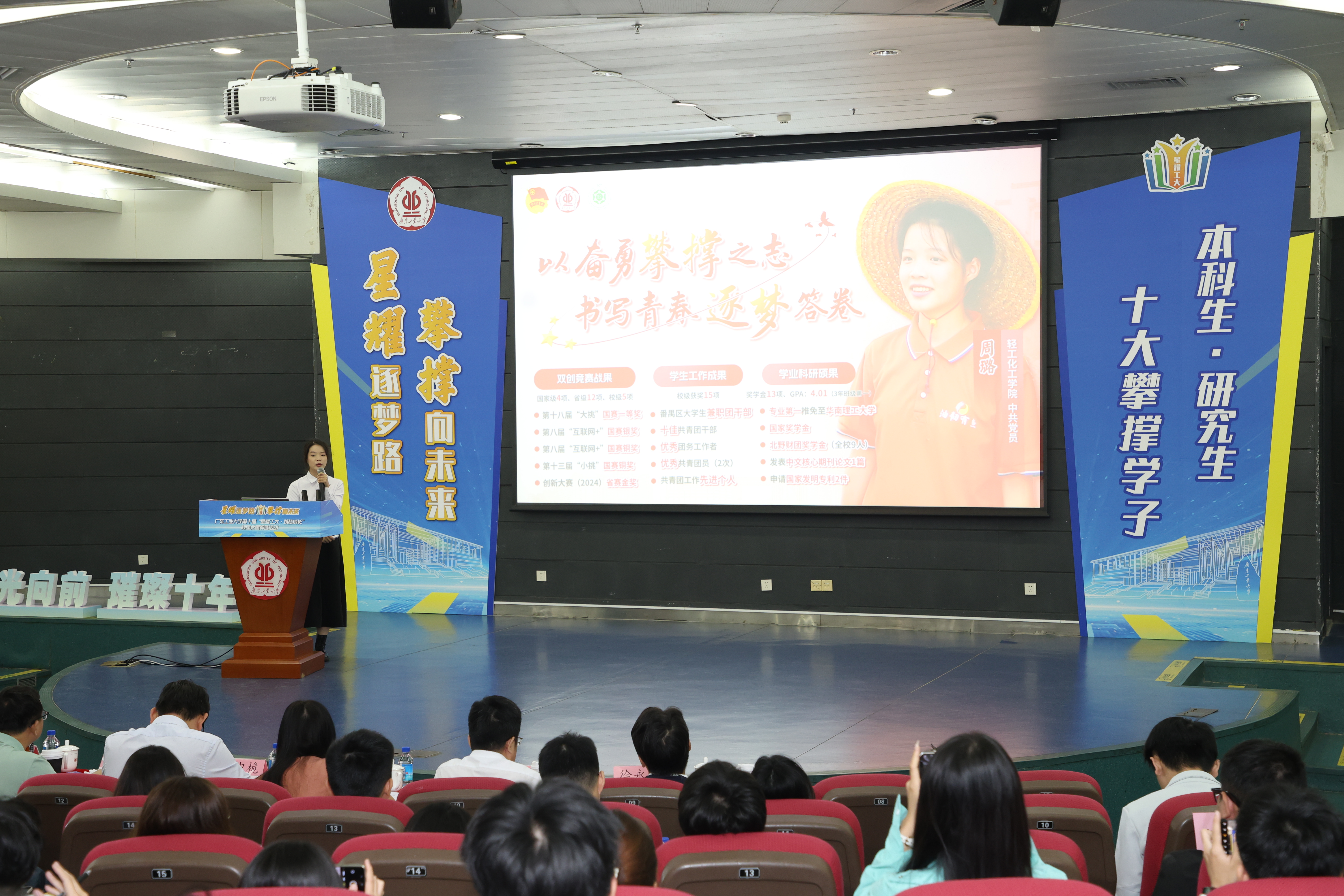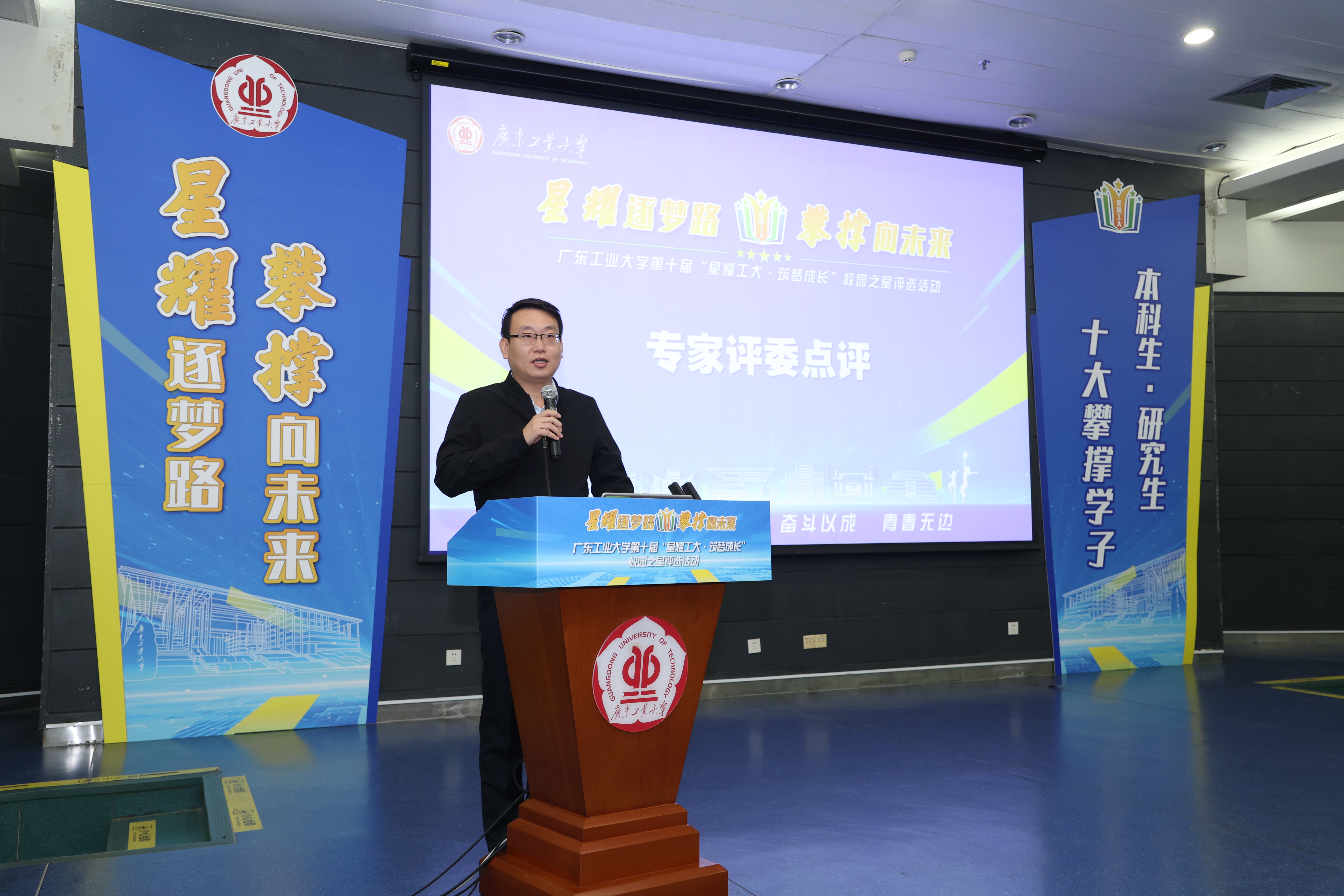 11月8日,学校在大学城校区大讲堂举办学校第十届“星耀工大·助梦成长”校园之星评选活动之“十大攀撑学子”终选评审活动,活动分“十大攀撑学子”(研究生)、“十大攀撑学子”(本科生)两个阶段进行。广东省教育厅思想政治工作与宣传处、广东财经大学党委学生工作部,广东技术师范大学党委学生工作部,以及学校党委学生工作部、研究生院、心理健康教育中心、教务处等单位相关负责人担任专家评委。各学院教师评委代表、学生评委代表与学生观摩团共计近250人参加活动。