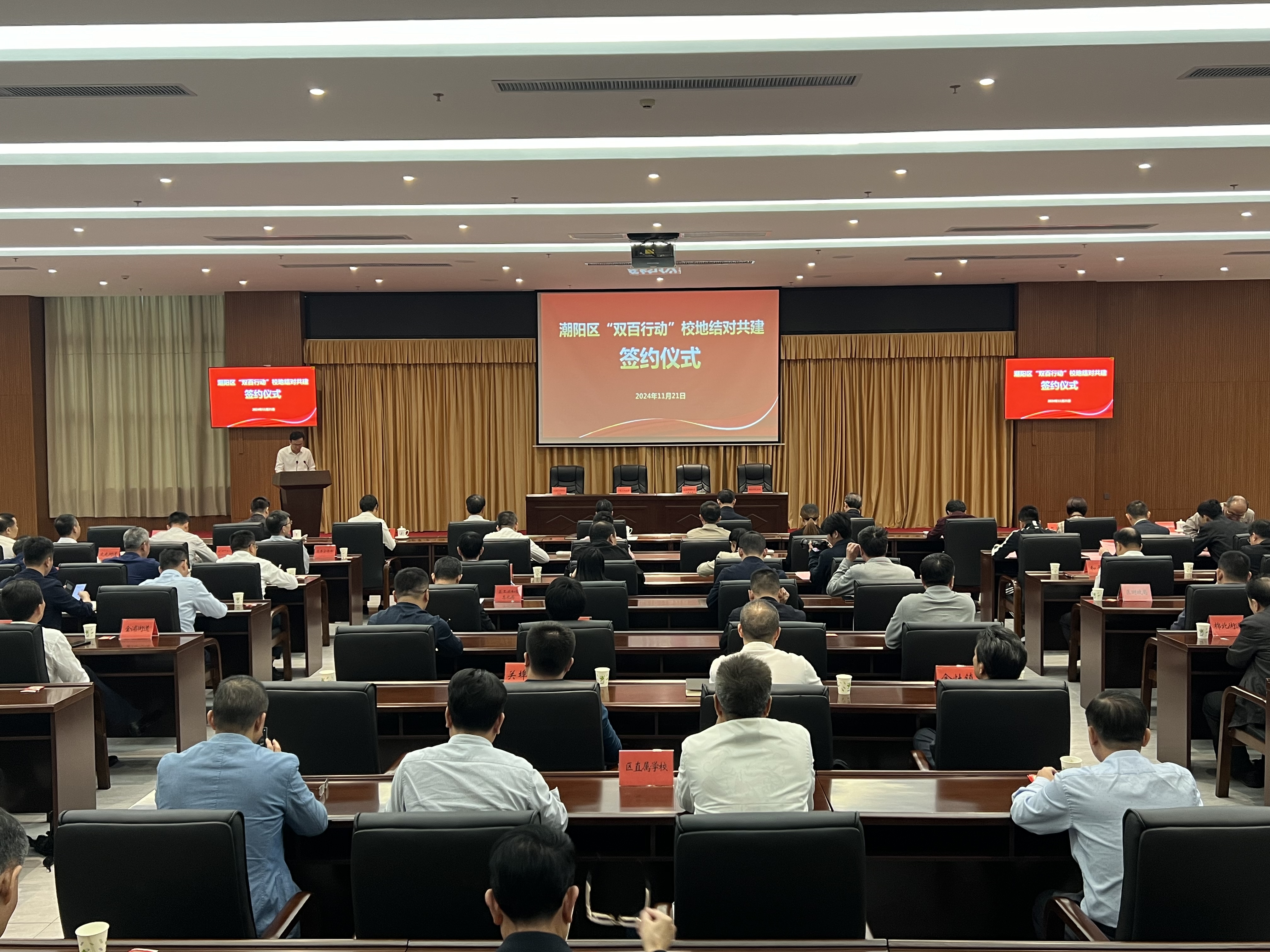 潮阳区直有关单位、各镇(街道)及区直属学校负责同志,广工和韩山师范学院、珠海艺术职业学院党委办公室、校长办公室,党委组织部等单位和部门有关负责同志参加了仪式。