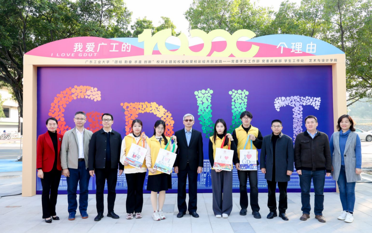 12月19日下午,广工校训主题知校爱校荣校彩绘共创实践活动在大学城校区挑战路广工通道举办,首次发布AI创作的活动主题曲《我爱广工的10000个理由》。学校党委副书记陈卓武出席并讲话,党委学生工作部、总务部、艺术与设计学院、国际教育学院相关负责人以及各学院学生代表、楼长代表、彩绘共创志愿者代表等参加活动。