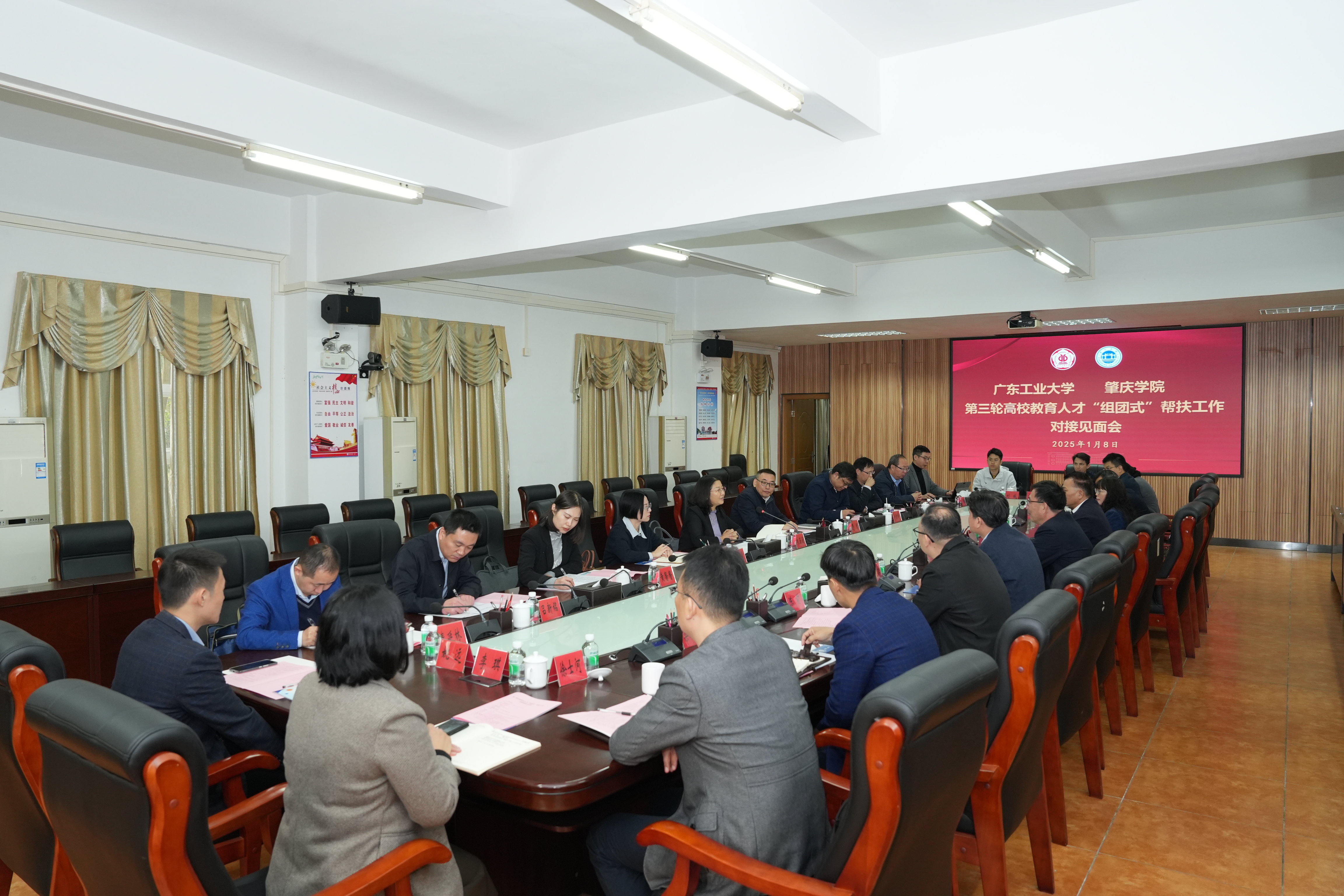 1月10日,省委教育工委召开第二轮广东省高校教育人才“组团式”帮扶工作总结暨第三轮帮扶工作动员部署会。会上获悉,广工获“突出贡献高校”奖,第二轮帮扶工作队队长刘怡军、队员张伟获评优秀。省委教育工委于2022-2024年组织实施了第二轮高校教育人才“组团式”帮扶工作。根据第三轮帮扶工作部署,我校继续对口帮扶肇庆学院。学校党委高度重视,精心组建帮扶队伍。1月8日,受校长邱学青委托,学校党委副书记朱蔚蔚率帮扶工作队赴肇庆学院开展新一轮帮扶工作对接。党委办公室、校长办公室、党委组织部、科学研究管理部、研究生院等职能部门负责人参加活动。在第三轮帮扶工作动员部署会上,学校党委常委、副校长鲁仁全代表学校做交流发言,介绍了我校帮扶肇庆学院的工作经验、成效和体会。