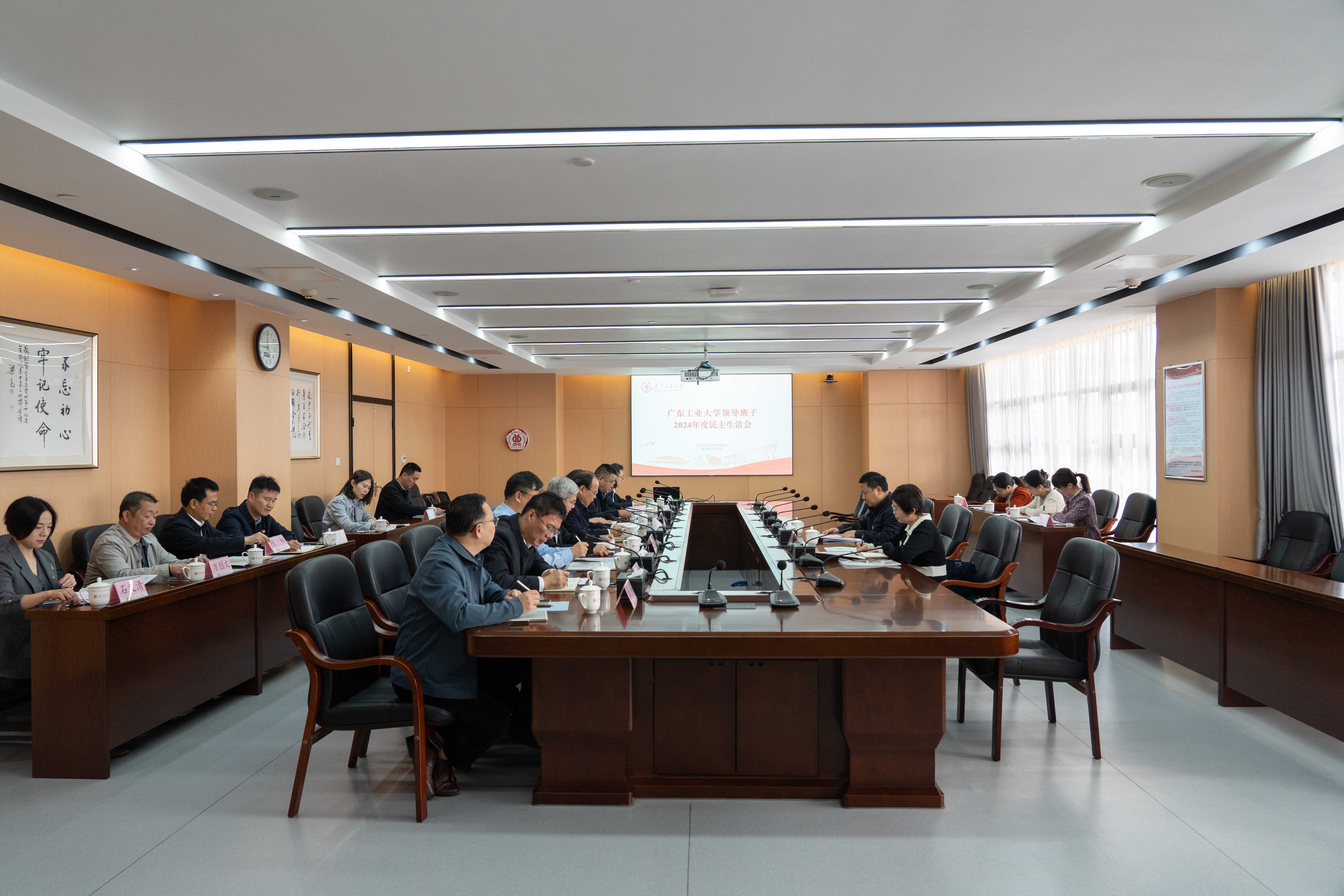 邱学青在总结讲话中指出,今年是“十四五”规划的收官之年,是“十五五”规划的谋篇布局之年,也是广工“冲一流”爬坡迈坎的关键之年。全省高质量发展大会为广工建设高水平创新型大学指明了方向,对党委领导班子观大势、谋大局、抓大事提出了新的更高要求,对党委领导班子加强党的纪律建设,在党的纪律建设中发挥示范表率提出了新的更高要求。党委领导班子要以此次民主生活会为新起点,巩固深化党纪学习教育成果,以彻底的自我革命精神锻造更加坚强有力的领导集体,以严明的纪律推动全面从严治党向纵深发展,为高水平创新型大学建设提供动力保障,推动学校事业不断从胜利走向胜利。一是带头加强党性修养,持续在践行对党忠诚上见真章、出实效。坚持不懈用习近平新时代中国特色社会主义思想凝心铸魂、固本培元,以实际行动忠诚拥护“两个确立”、坚决做到“两个维护”。二是带头严明党规党纪,持续在增强纪律定力上见真章、出实效。从理论源头加深对党的纪律规矩丰富内涵的理解把握,自觉把铁的纪律转化为日常习惯和行动准绳,在学纪、知纪、明纪、守纪上再提升。三是带头勇于担当作为,持续在全面深化改革上见真章、出实效。树立正确政绩观,强化办学治校战略思维、系统思维,锚定一流目标加速建设高水平创新型大学,为不断开创广东现代化建设新局面贡献广工力量。四是带头履行管党治党政治责任,持续在推动全面从严治党上见真章、出实效。坚持用改革精神和严的标准管党治党,以管党治党新成效保障全面深化改革的落实。
