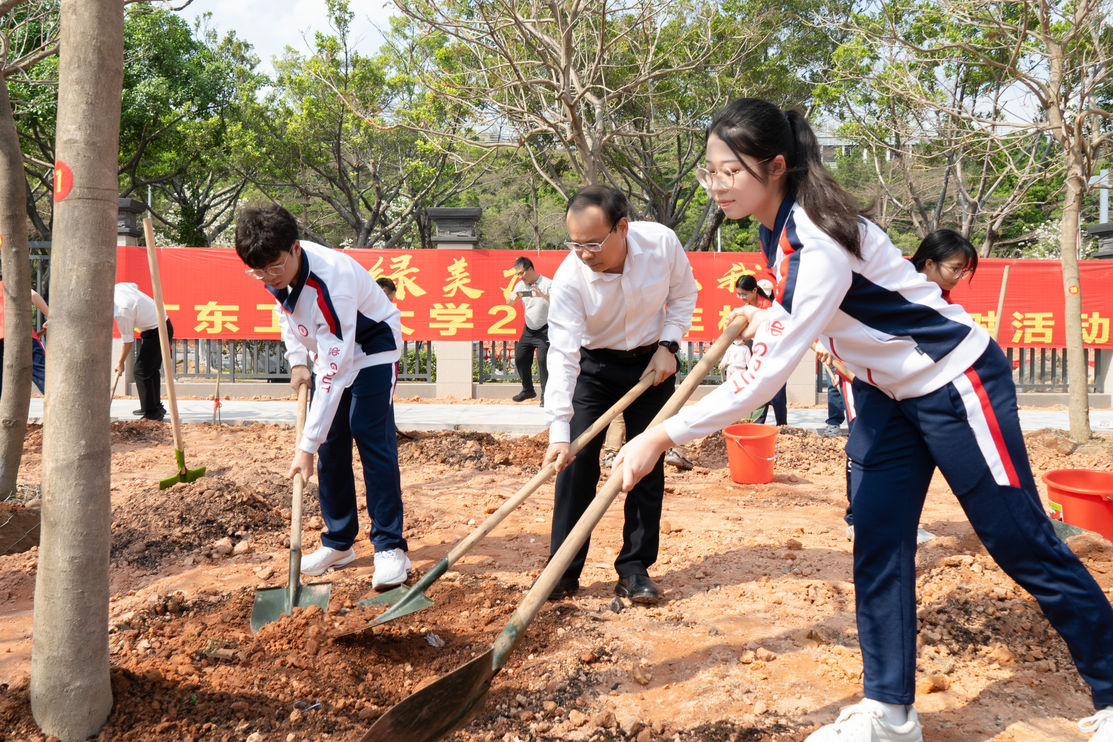 据悉,2021年以来,学校利用每年植树节契机,坚持开展校领导带头、师生共同植树活动,不断增厚广工“绿色家底”,推动形成植绿、爱绿、护绿、兴绿的良好风气,打造有显示度的校园绿化景观,助力学校高质量发展。