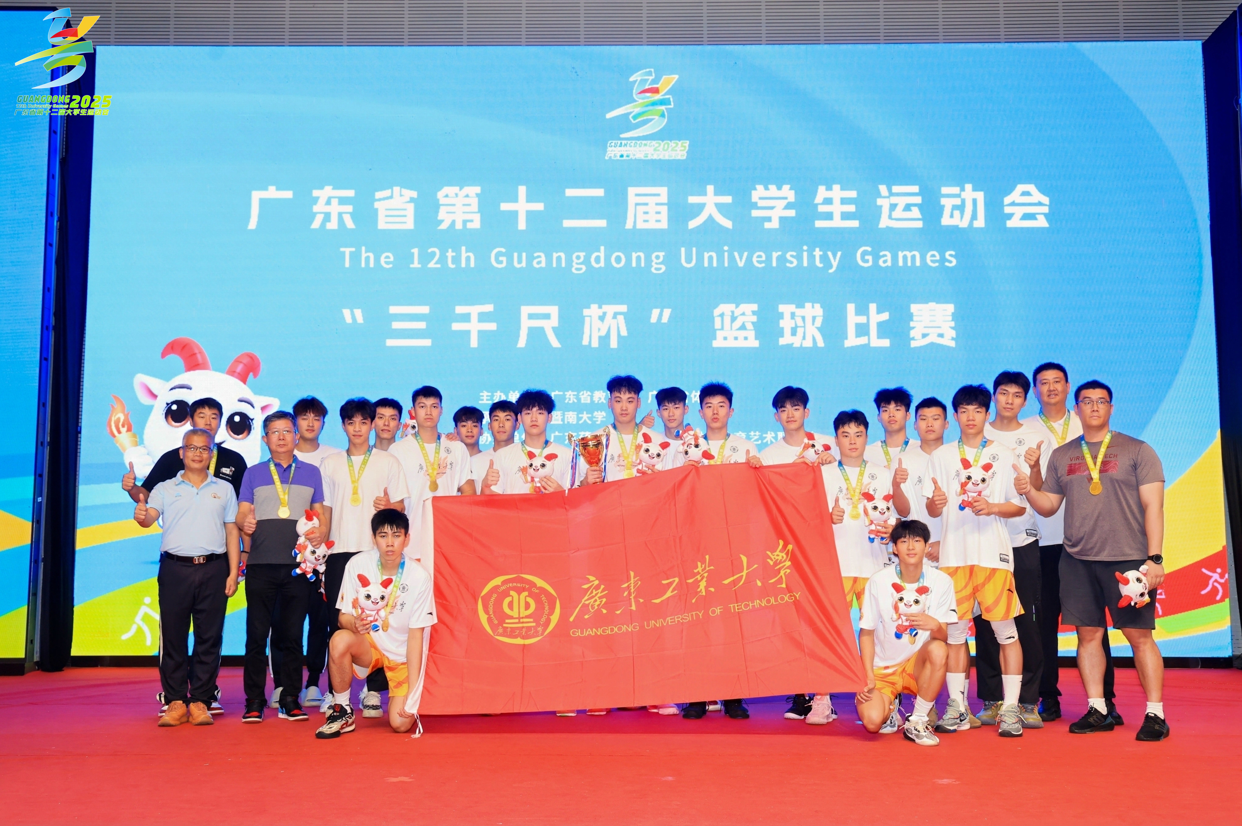 5月20日下午,广东省第十二届大学生运动会男子乙B组篮球决赛中,广工男篮以77比62战胜东道主暨南大学,为广工代表团赢得本届省大运会的第四枚金牌。