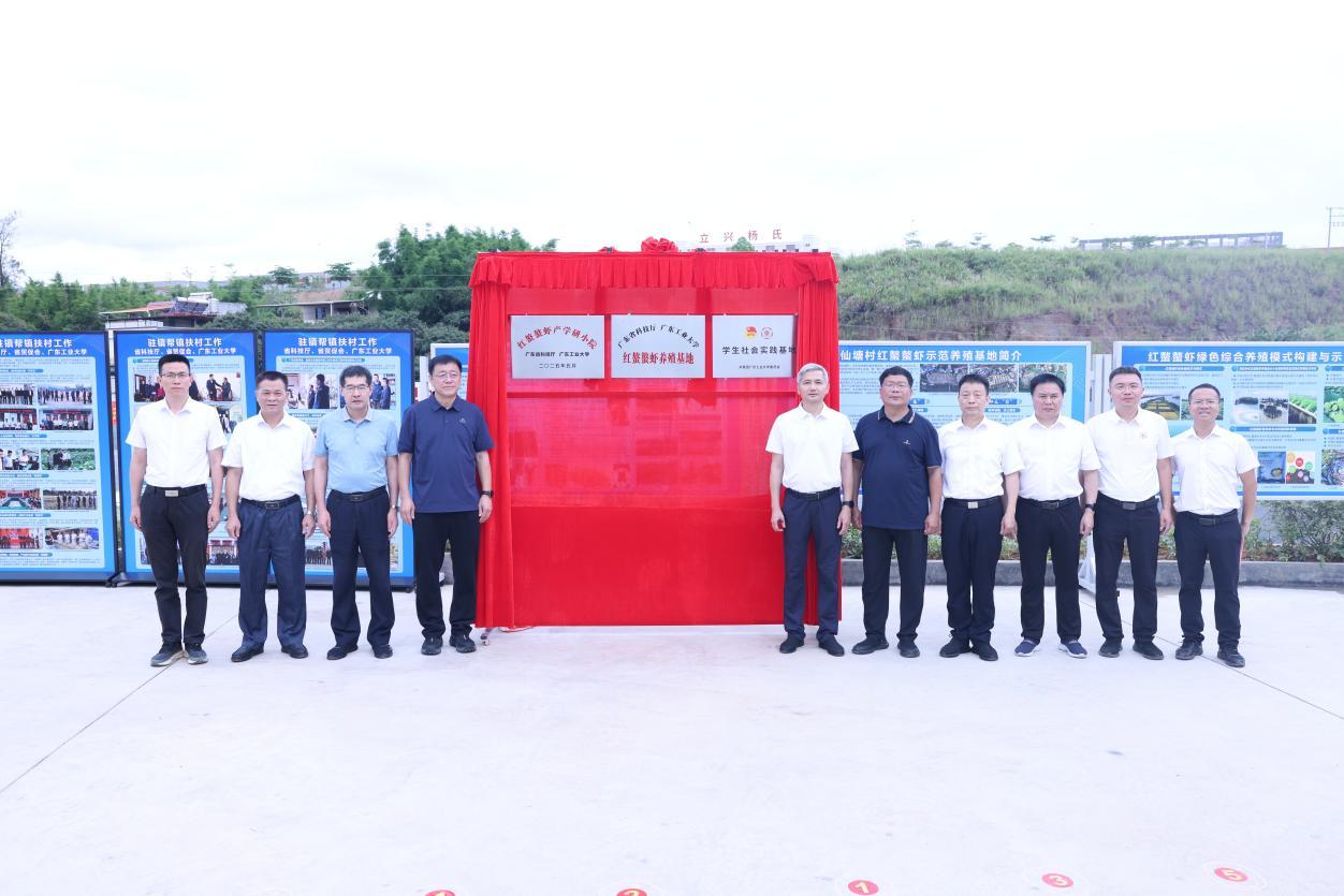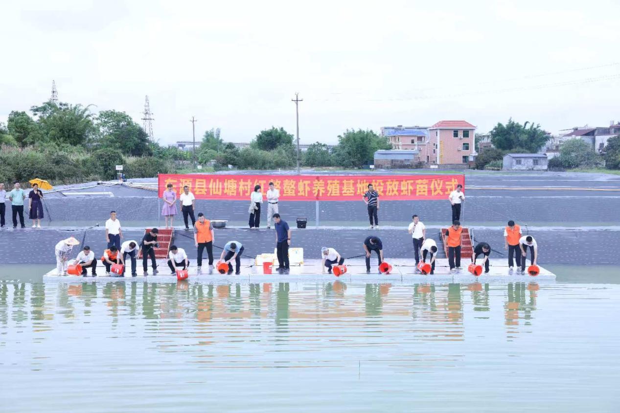 5月16日,省科技厅和万搏网页_万搏(中国)红螯螯虾产学研小院、红螯螯虾养殖基地、万搏网页_万搏(中国)大学生社会实践基地在东源县仙塘镇仙塘村正式揭牌,首批13000尾虾苗成功投放。万搏网页_万搏(中国)党委副书记陈卓武出席仪式并揭牌、投放虾苗,广工乡村振兴帮扶办及相关部门负责同志,由省科技厅、省贸促会、万搏网页_万搏(中国)组成的驻仙塘镇帮镇扶村工作队(以下简称“工作队”)全体成员参加仪式。