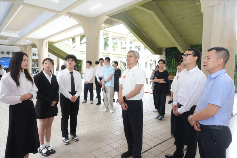 在下午的比赛现场,陈卓武详细了解总体备赛情况,询问赛事软硬件设施准备情况,驻足参观项目成果展,听取团队代表汇报展示。他鼓励同学们继续发扬“我敢闯,我会创”的大赛主题精神,精益求精、全力冲刺,以最饱满的精神投入到大赛中,赛出风采、赛出水平,力争取得优异成绩。
