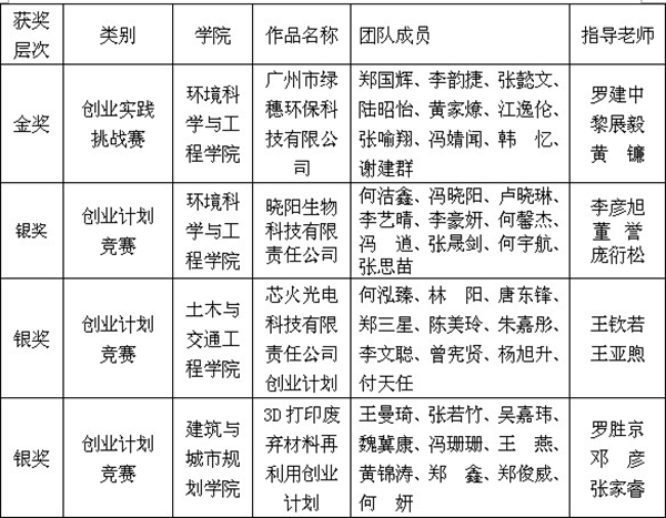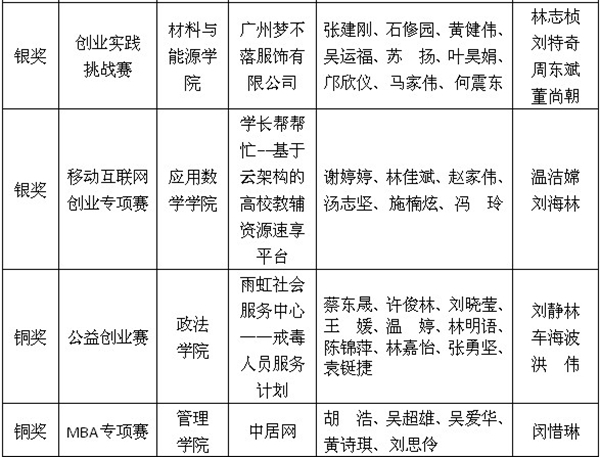 附:我校参加2014年“创青春”全国大学生创业大赛获奖情况一览表