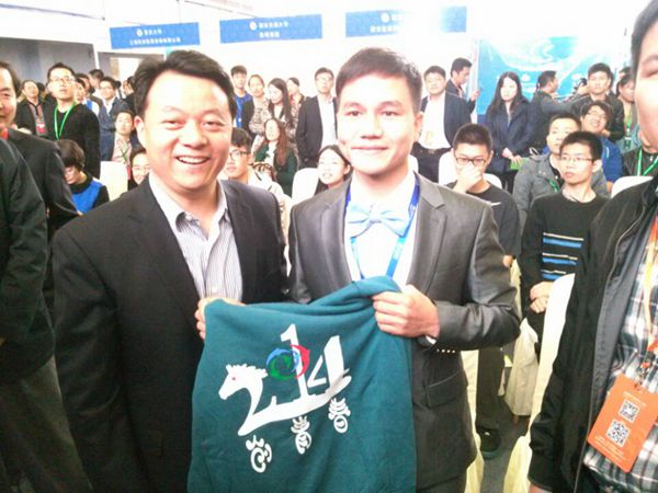 本届大赛以“中国梦 创业梦 我的梦”为主题,自今年1月启动以来,全国1129所高校参加了相关赛事,近10万件作品参与校级竞赛,近2万件作品参加了省级竞赛,最终来自209所高校的385件创业项目进入全国终审决赛。终审决赛期间,团中央书记处书记傅振邦关心我校大学生创业项目《广州梦不落服饰有限公司》,鼓励大学生大胆创业。公司联合创始人苏扬向傅振邦赠送了公司产品“创青春”纪念文化衫。