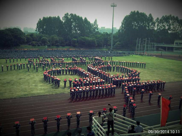 陈新、汤耀平、米银俊分别在三个校区作军训总结讲话。校领导在讲话中充分肯定2014级新生军训丰硕成果,希望同学们要自觉学习和践行习近平总书记对大学生提出的“勤学、修德、明辨、笃实”的价值观,鼓励同学们要继续发扬军训精神,奋勇拼搏,锐意进取,为自己的梦想、为学校的梦想、为中华民族伟大复兴的中国梦努力奋斗。校领导代表学校对承担本次军训任务的武警广东总队第二支队和承训官兵表示衷心感谢和崇高敬意。今年新生军训各项工作进展顺利,受训学生达10502人,完成了教学大纲规定的所有科目,还开展了校园安全、守法教育和消防、应急疏散演练等,实现了“准备充分、组织严密、动作有序、应对有效、服务周到、保障有力”的预期目标。