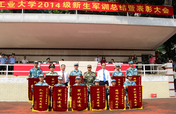 承训部队领导作了总结讲话。会上还宣读了2014级新生军训表彰决定。校领导和部队领导为军训获奖单位授予锦旗。