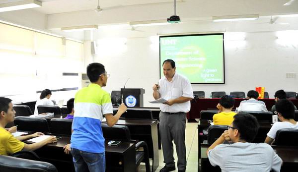 据了解,Barrett R. Bryant教授是受美国北德克萨斯大学派遣和计算机学院邀请来访我校的,7月7日开始历时两周为本科生及研究生上计算机主干课程《自动机理论》。