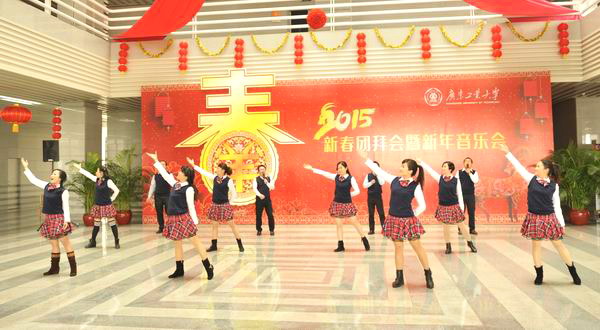 本网讯1月26日,学校在大学城校园举行2015年新春团拜会暨新年音乐会。校党委书记苏一凡、校长陈新等学校全体党政领导班子成员参加团拜活动,与师生员工共迎2015年新春的到来。