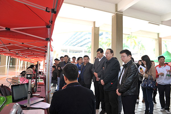 本网讯 1月10日,由全国高等学校学生信息咨询与就业指导中心主办,广东省高等学校毕业生就业指导中心、广州经济技术开发区人力资源和社会保障局、广东省高等学校毕业生就业促进会和我校承办的国家级经济技术开发区“送岗位进校园”活动暨2015届高校毕业生供需见面活动营销、经管、IT类专场活动在我校大学城校园举行。招聘会现场人头攒动,部分企业的面试摊位面前排起了长龙。现场招聘企业共计有282家,提供招聘岗位近6000个,其中在广州经济技术开发区组织了76家知名企业进入校园,开展“送岗位进校园”活动,计划招聘2015届毕业生2000多人,主要招聘岗位涉及IT、电子、生物医药、机械、经管等专业。活动吸引了索尼电子华南有限公司、广州市香雪制药股份有限公司、康师傅广州顶益食品有限公司等知名企业参加。